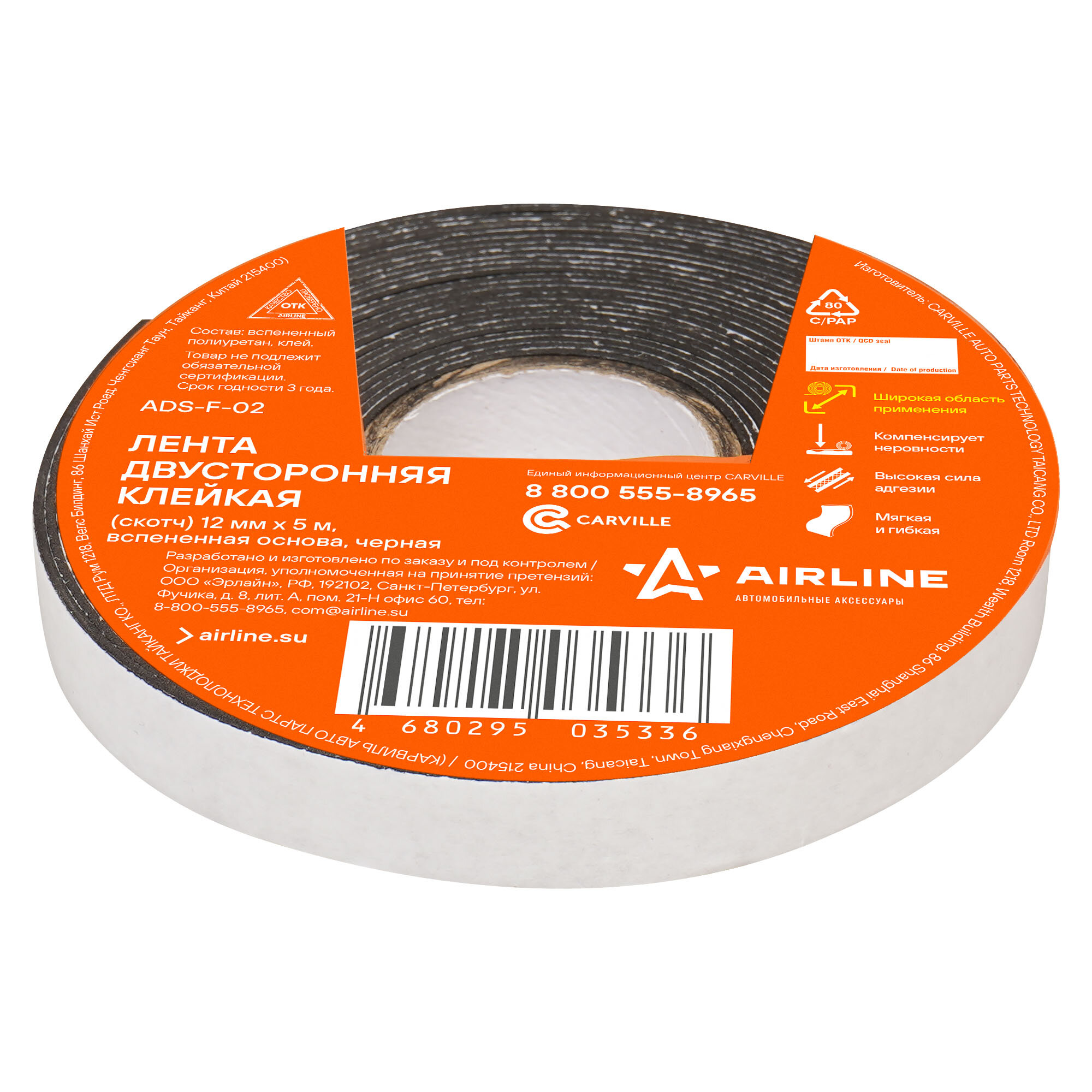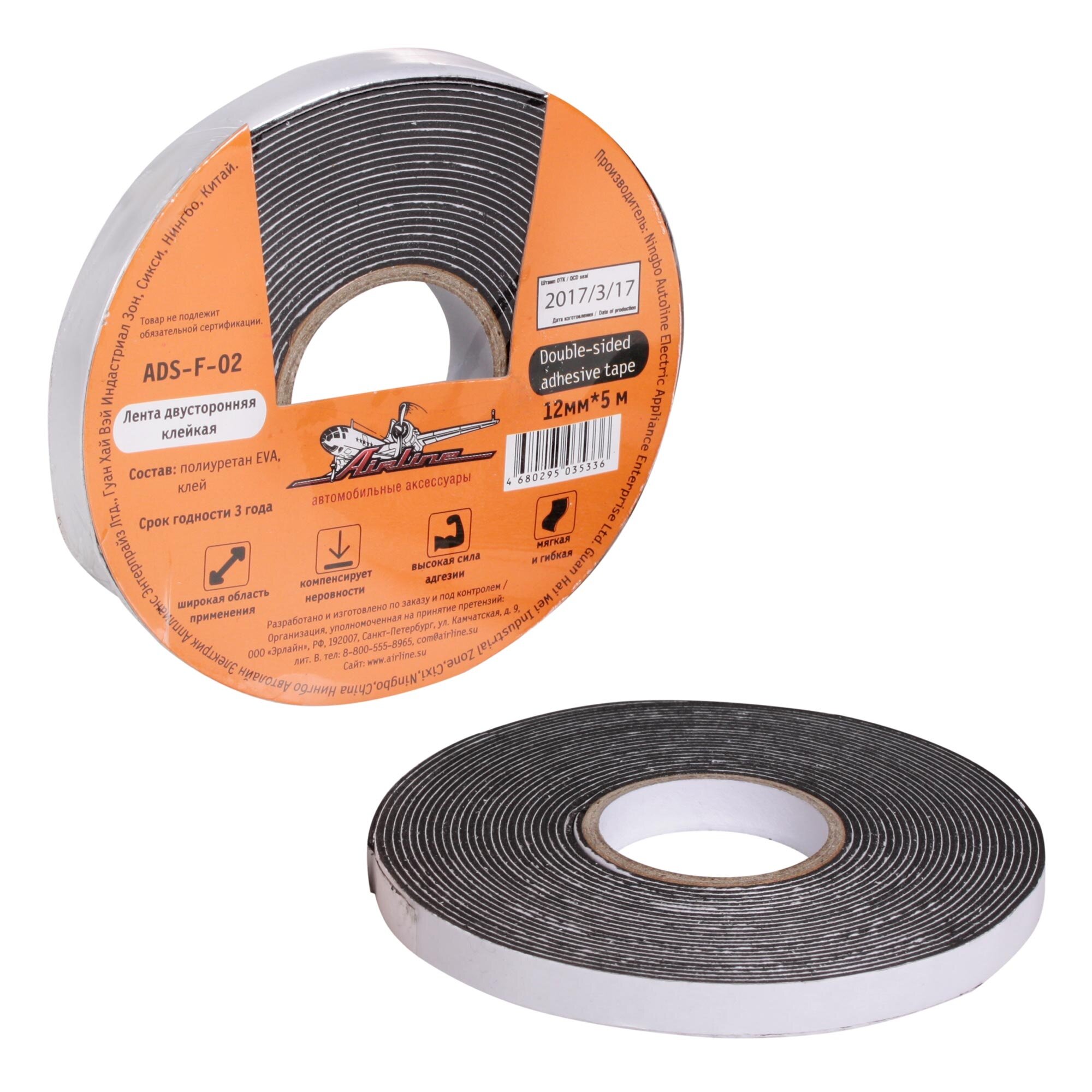 Лента двусторонняя клейкая (скотч) 12 мм*5 м вспененная основа черная AIRLINE (ADS-F-02)