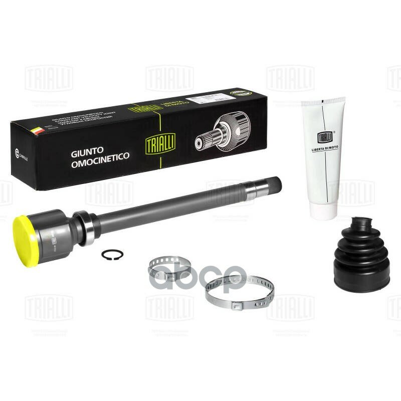 ШРУСы Trialli – это объединенный опыт ведущих европейских производителей, официальных поставщиков комплектующих на конвейеры. Гарантированное качество подтверждается 100% вихретоковым контролем корпуса, сепаратора, шлицов и дорожек качения. В наружных (внешних) ШРУСах «Trialli» применена классическая конструкция сепаратора с шариковыми подшипниками. Внутренние ШРУСы «Trialli» созданы с применением инновационных технологий, имеют современную трипоидную конструкцию, которая применяется у ведущих мировых производителей. Внутренние элементы ШРУСов дополнительно упрочнены индукционной закалкой, а на корпус ШРУСа наносится фосфатное покрытие, защищающее корпус от коррозии. В комплект правых и левых, передних и задних ШРУСов также входят защитные чехлы выполненные из высококачественного неопрена, специальная антифрикционная смазка на основе дисульфида молибдена (MoS2), крепеж.