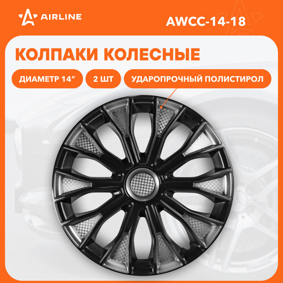 Колпаки колесные 14" "Волтек Т" серебристый/черный карбон компл. 2 шт. AIRLINE (AWCC-14-18)