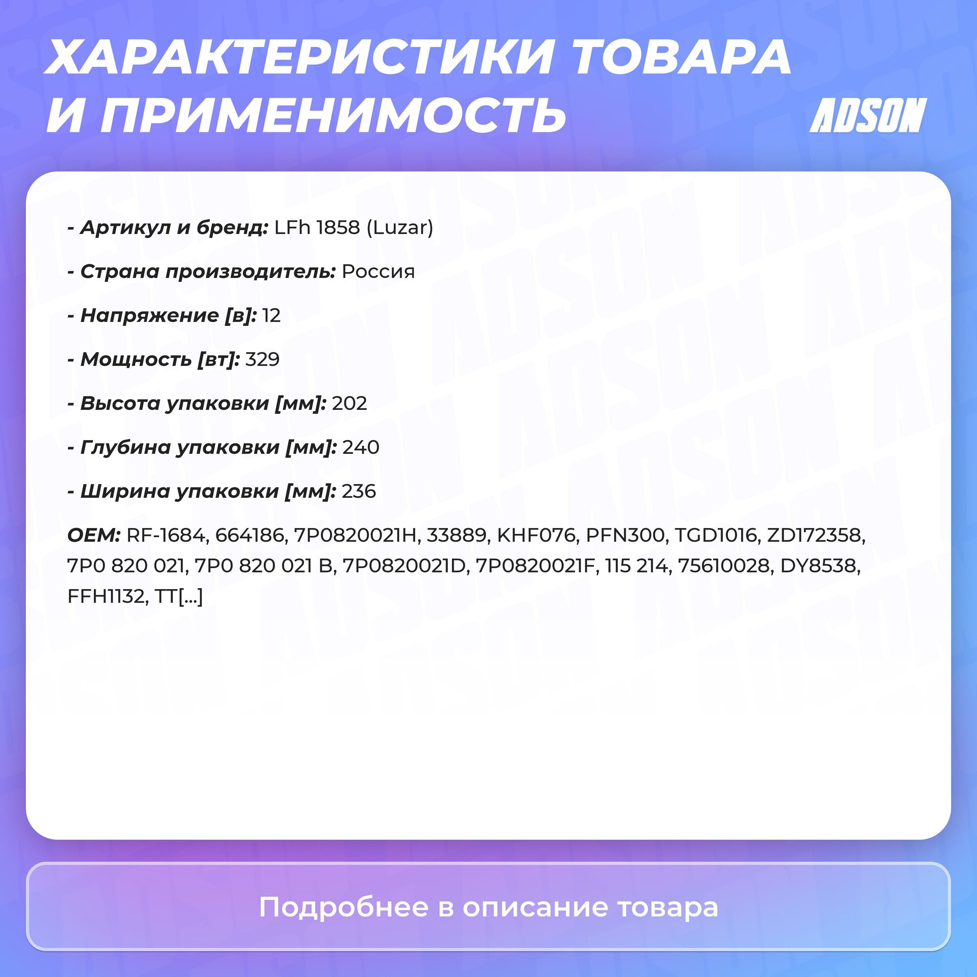 Вентилятор отопителя LUZAR обеспечивает максимально быструю циркуляцию воздуха. Вентиляторы состоят из электрического привода и пластиковой крыльчатки, устанавливаются в корпус отопителя в салоне автомобиля. У вентиляторов отопителя усовершенствованная конструкция лопастей вентилятора для высокой скорости работы и подачи большего объема воздуха. У вентиляторов отопителя откалиброваная крыльчатка, поэтому уровень шума до 50% ниже, чем у аналогов. Вал электродвигателя вентиляторов LUZAR имеют два плавающих подшипника, что снижает трение и исключает биение вала.