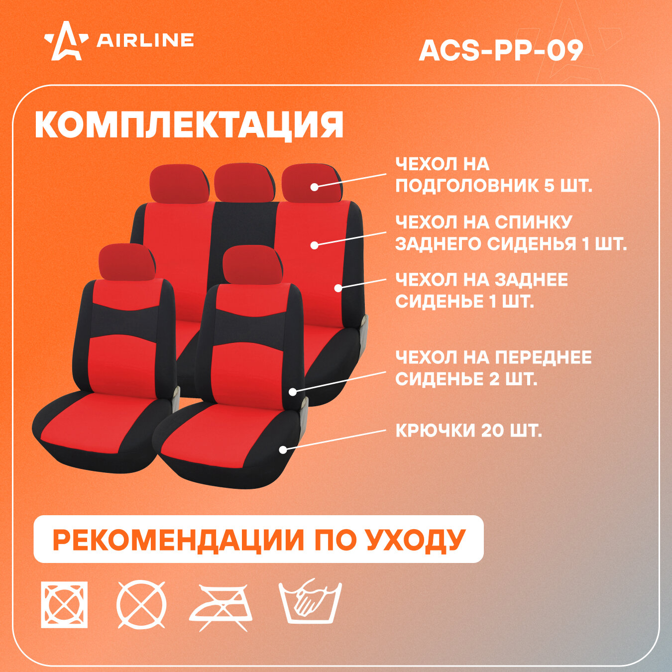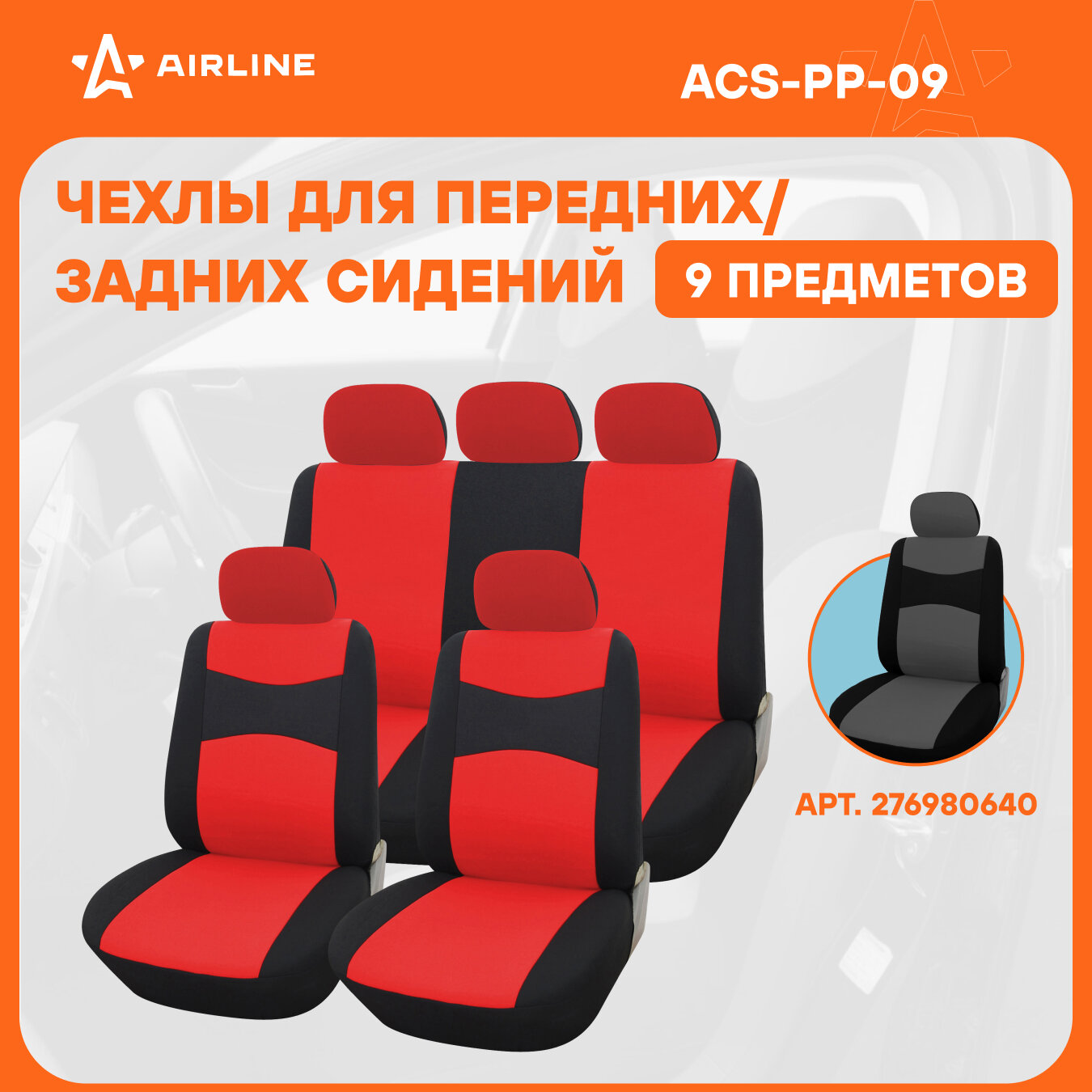 Чехлы для сидений универсал. "RS-2k" передн./задн.(9 предм.) полиэстер черн./красн. AIRLINE (ACS-PP-09) (размер: универсальный)