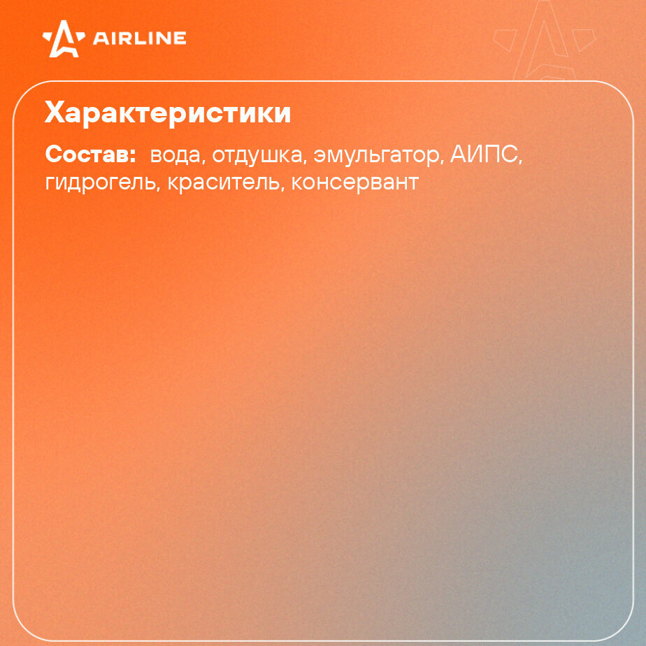 | Состав | вода, отдушка, эмульгатор, АИПС, гидрогель, краситель, консервант |