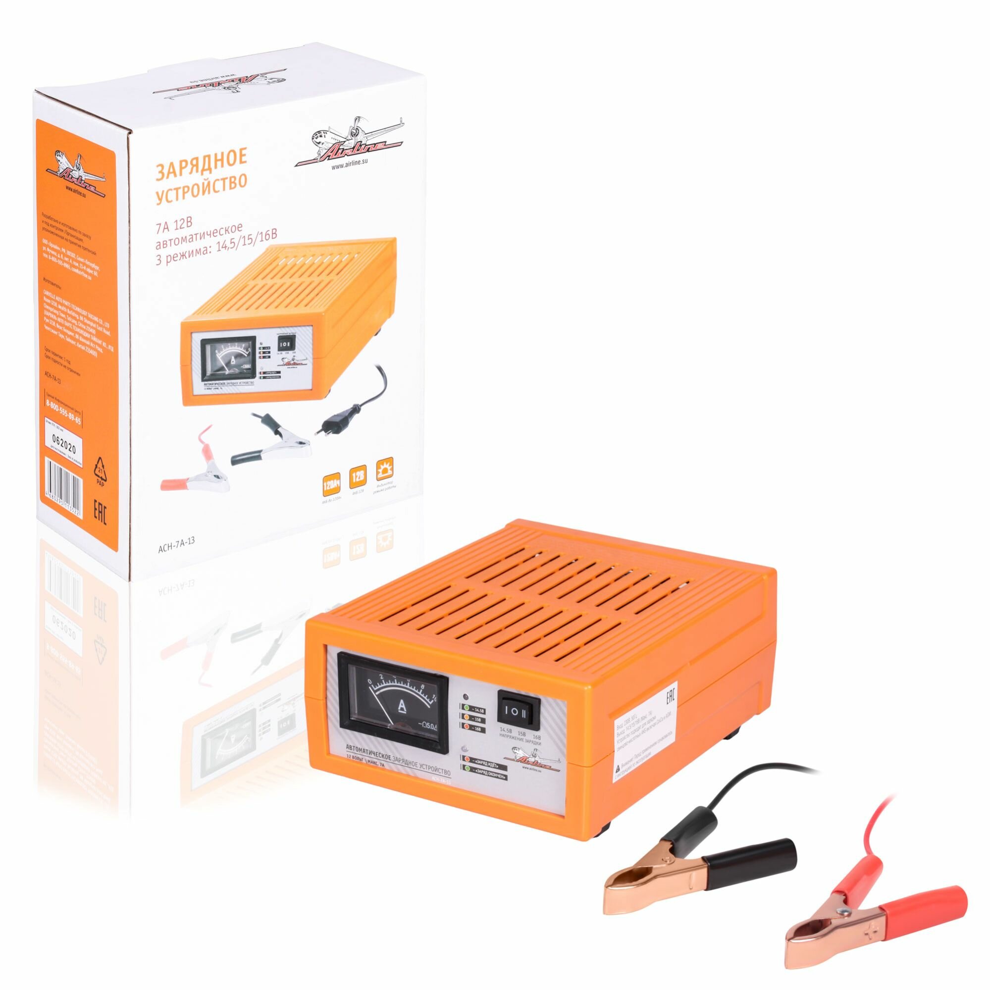 Зарядное устройство 7А 12В амперметр автомат импульсн. (3 режима 145/15/16В) AIRLINE (ACH-7A-13)