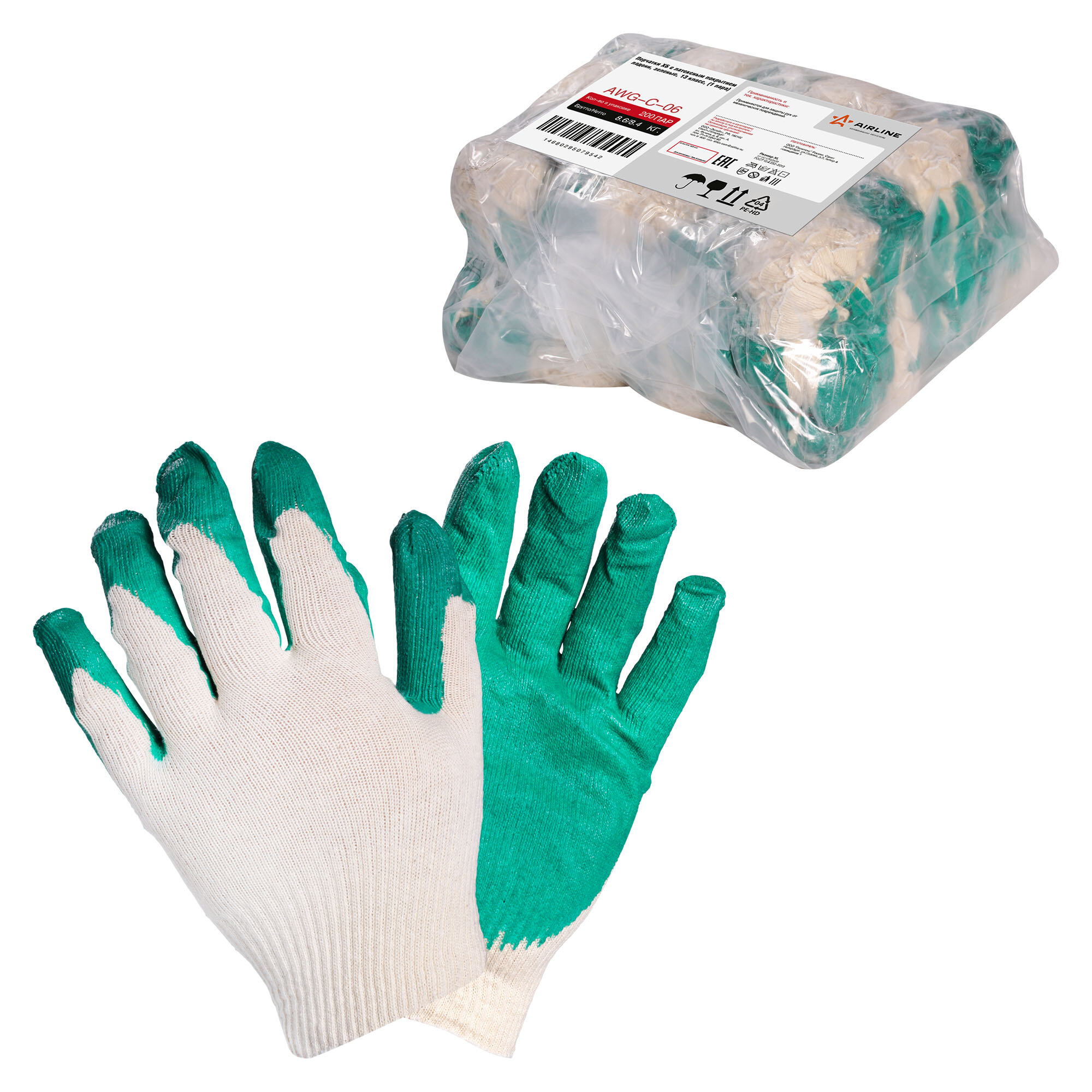 Перчатки ХБ с латексным покрытием ладони зеленые 13 класс (1 пара) AIRLINE (AWG-C-06) (размер: XL)