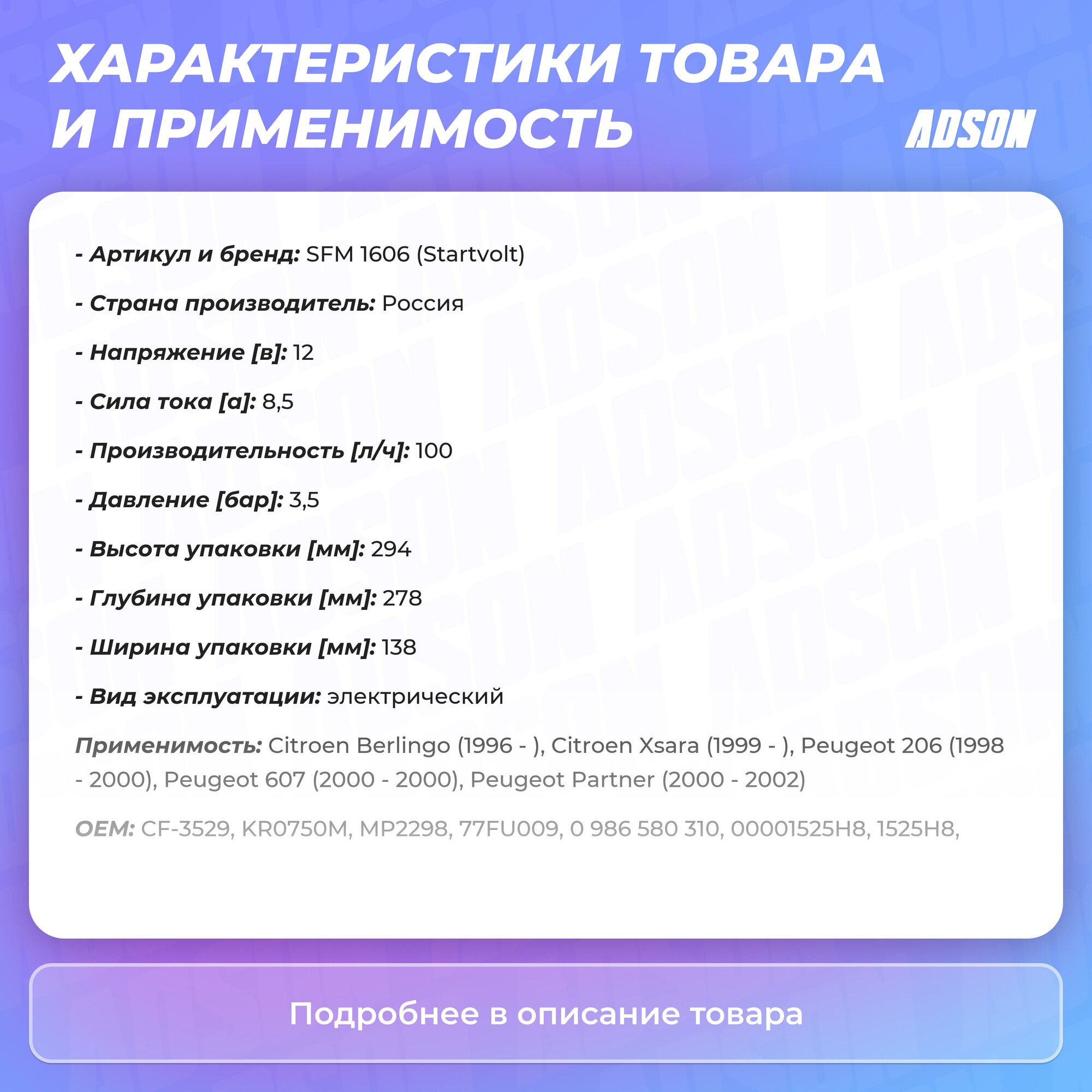 Модуль топливного насоса для автомобилей Peugeot/Citroen 206 (98-)/Berlingo (96-) 1.6i-2.0i StartVOLT SFM 1606