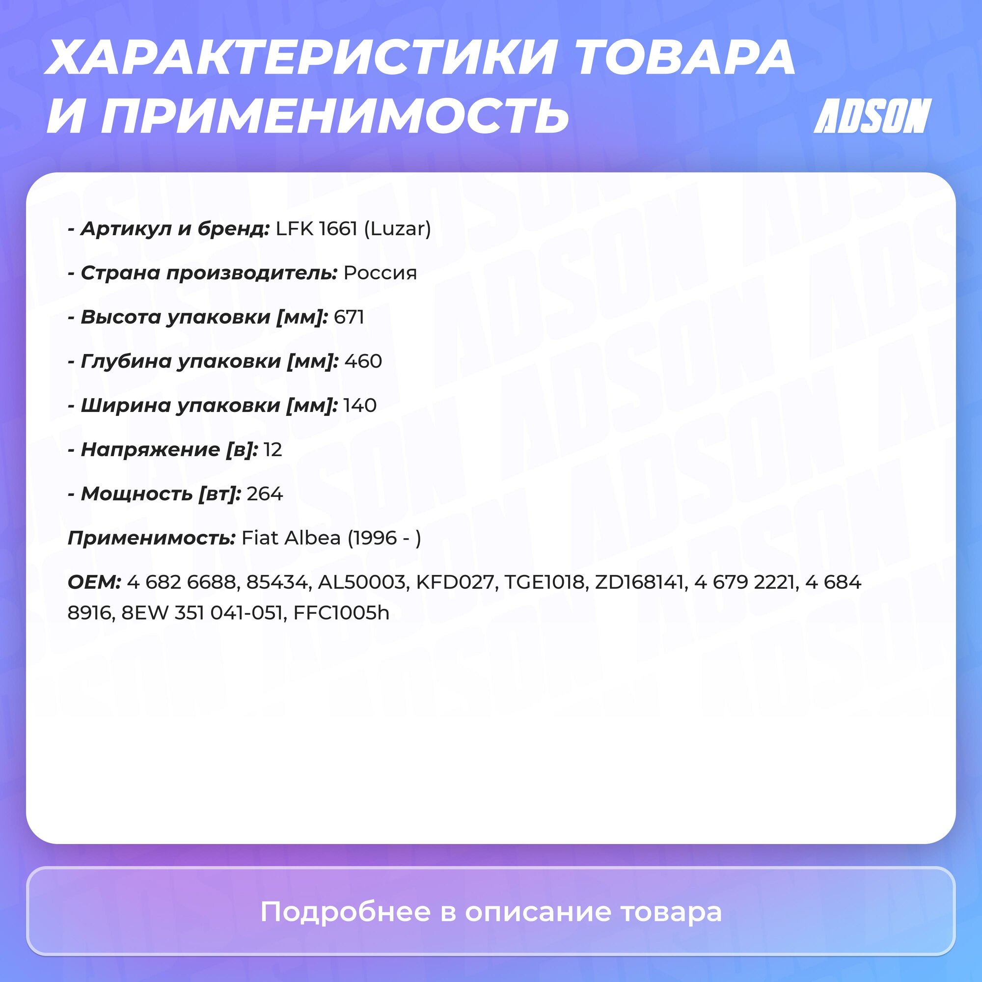 Сервис сравнения цен СкидкаГИД предлагает сравнить цены на товар «Электровентилятор охлаждения для автомобилей Albea (02-) (с кожухом и резист.) A/C+ LUZAR (LFK 1661)»