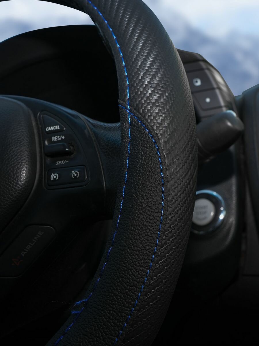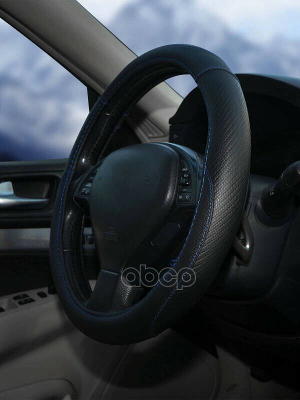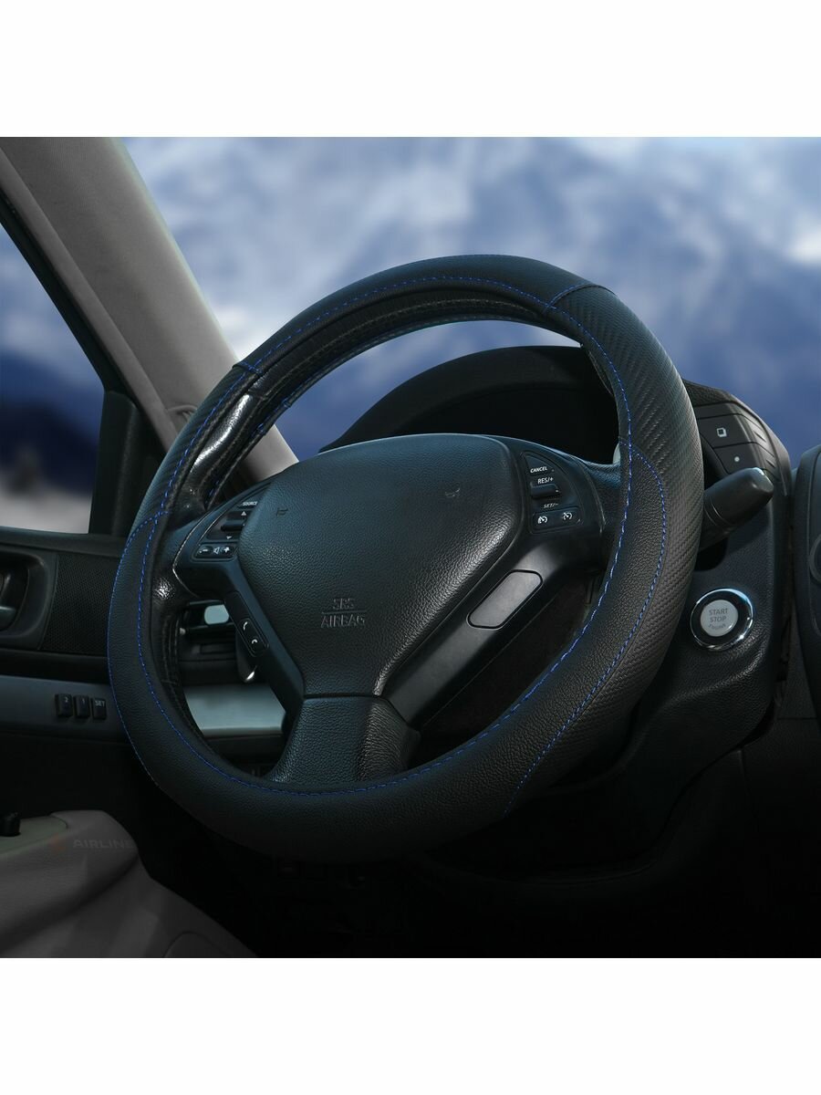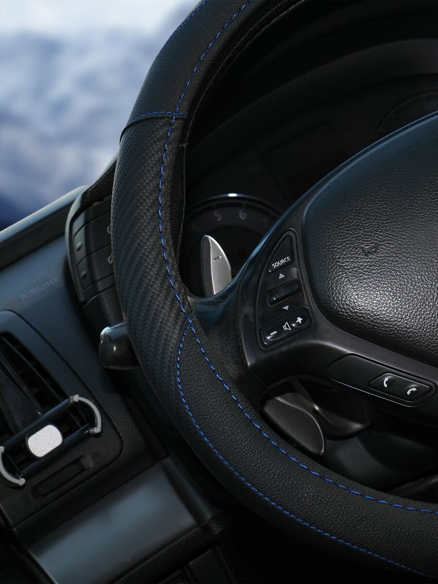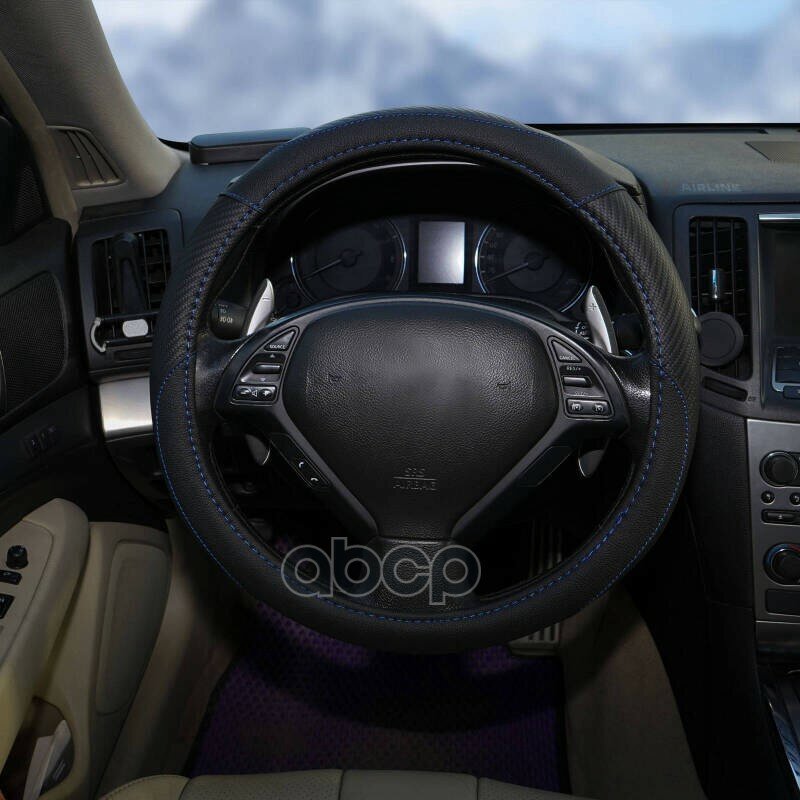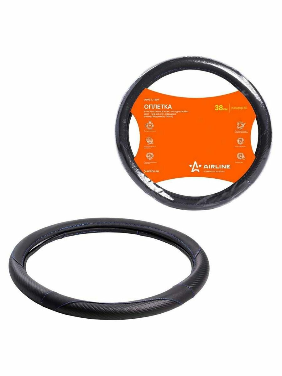 Оплетка на руль искусст. кожа текстура карбон черная син. прошивка 38 см/М AIRLINE (AWS-LI-16M)