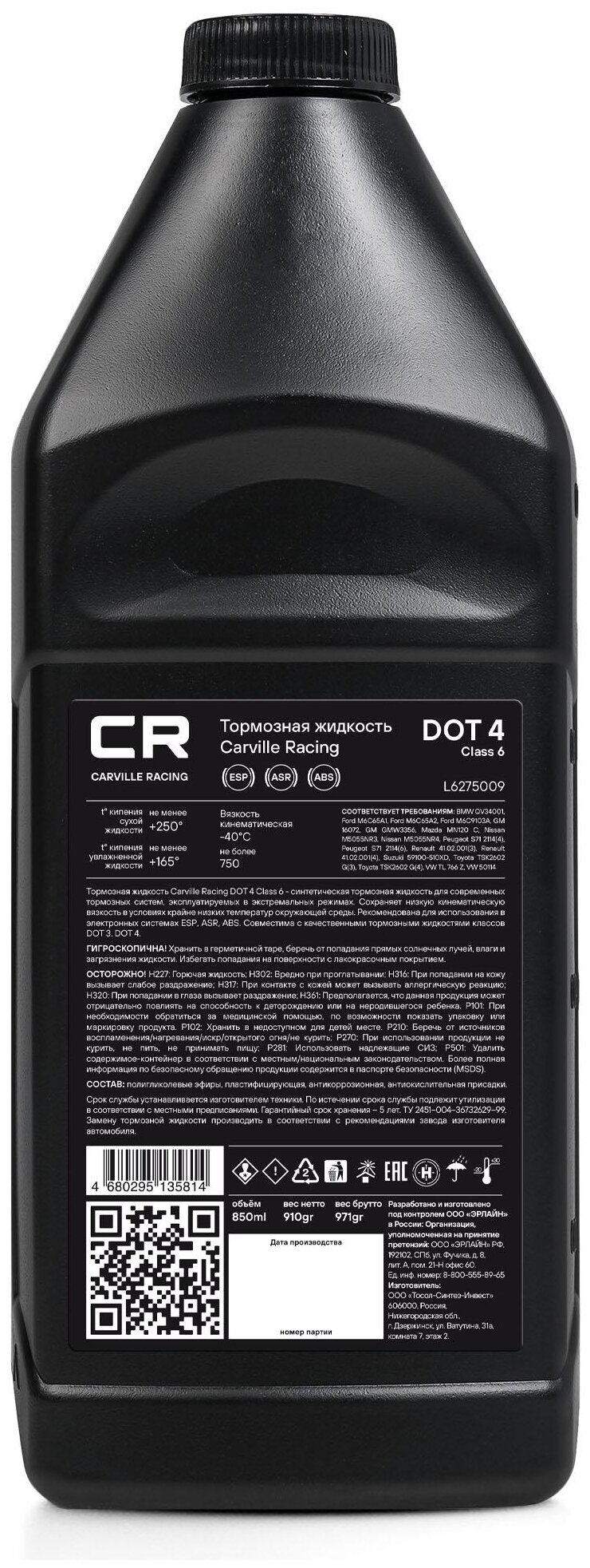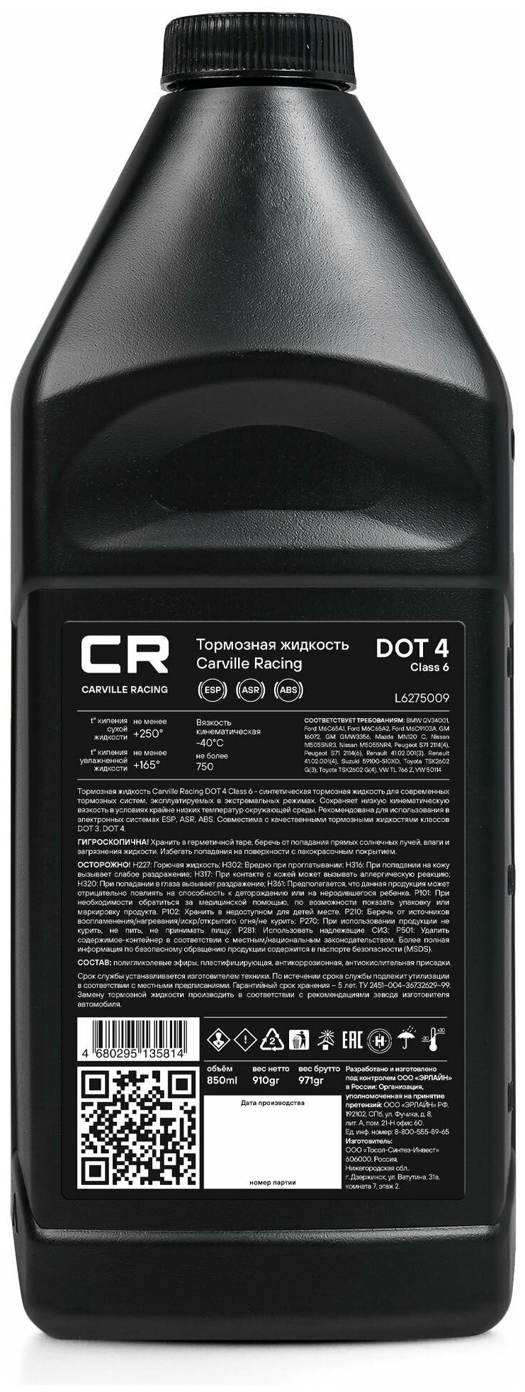 Тормозная жидкость DOT 4 Class 6 850мл/910гр Carville Racing (L6275009)