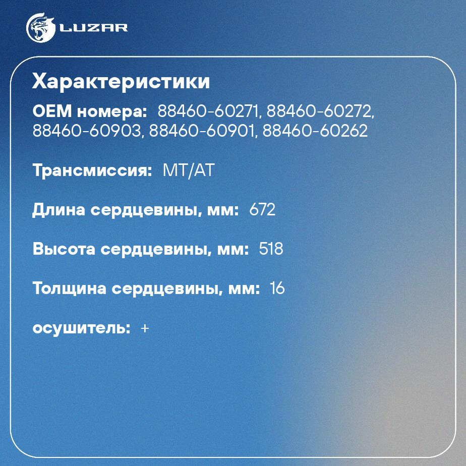 Сервис сравнения цен СкидкаГИД предлагает сравнить цены на товар «Радиатор кондиционера для автомобилей Land Cruiser 100 (98-) M/A LUZAR (LRAC 1949)»