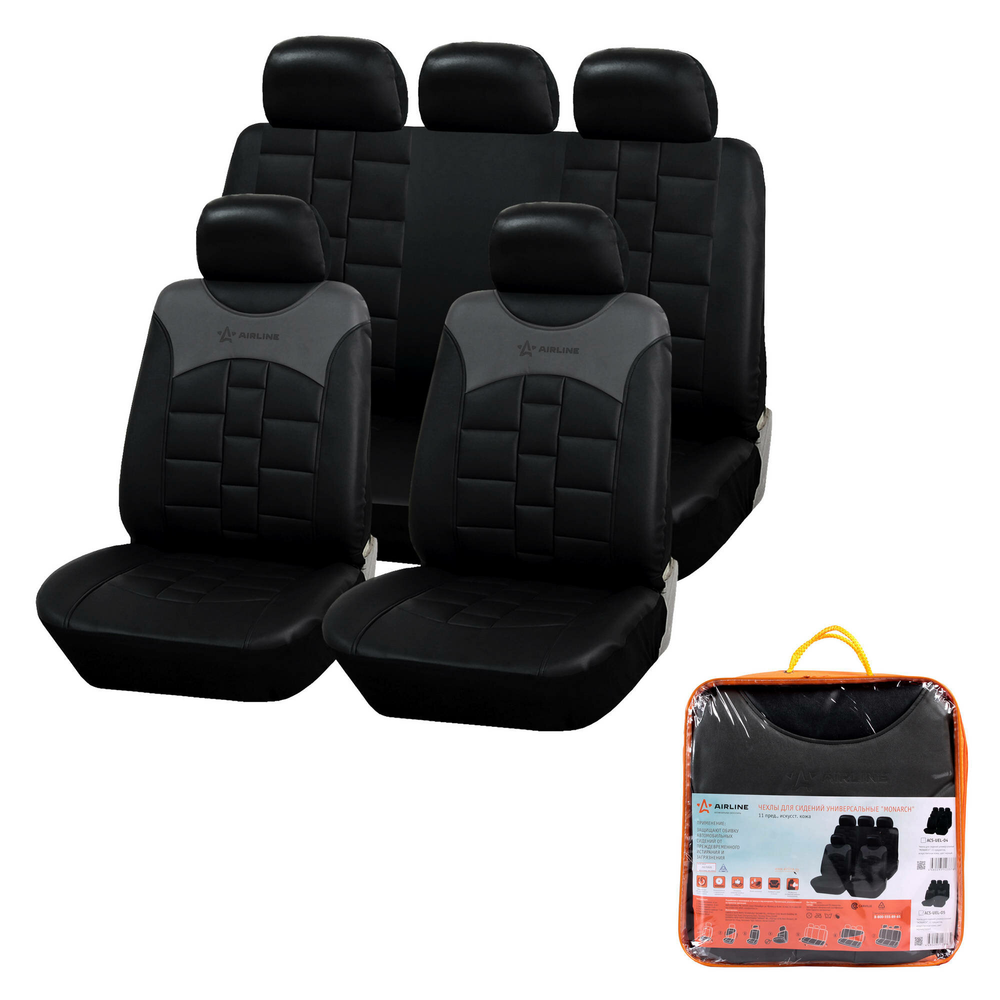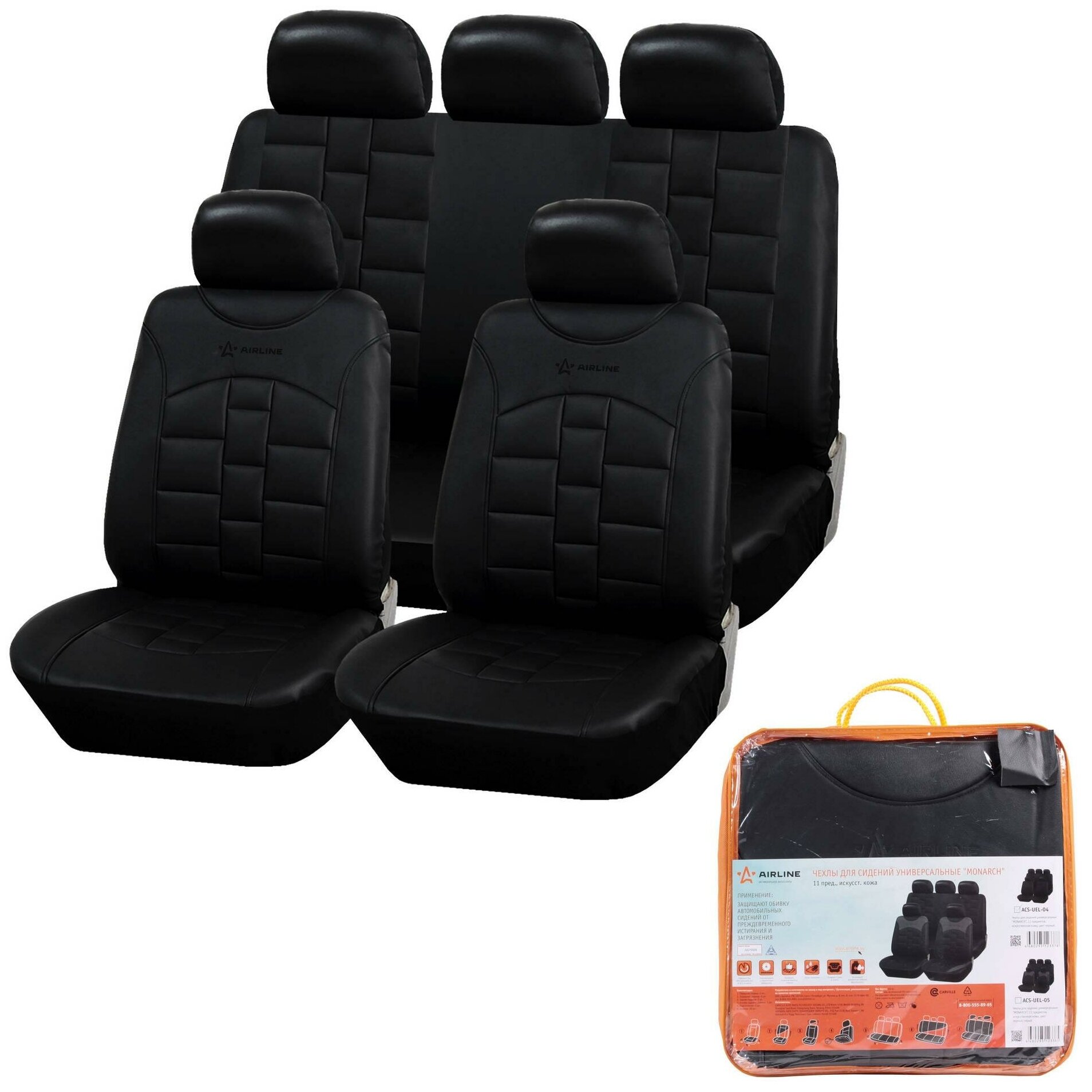 Чехлы для сидений универсальные "MONARCH" 11 пред искусст.кожа черн. AIRLINE (ACS-UEL-04) (размер: универсальный)