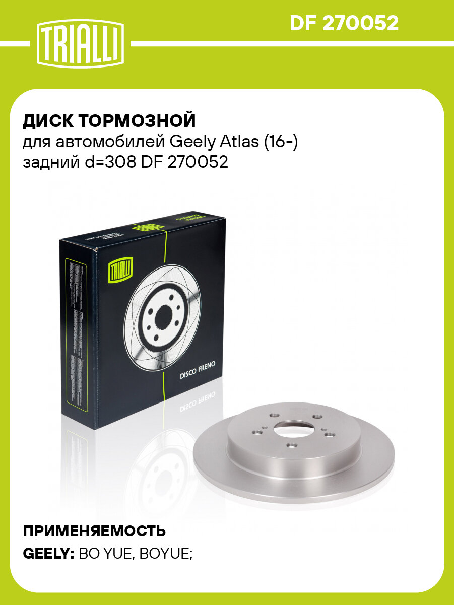 Диск тормозной задний для автомобилей Geely Atlas (18-) d=308 TRIALLI (DF 270052)