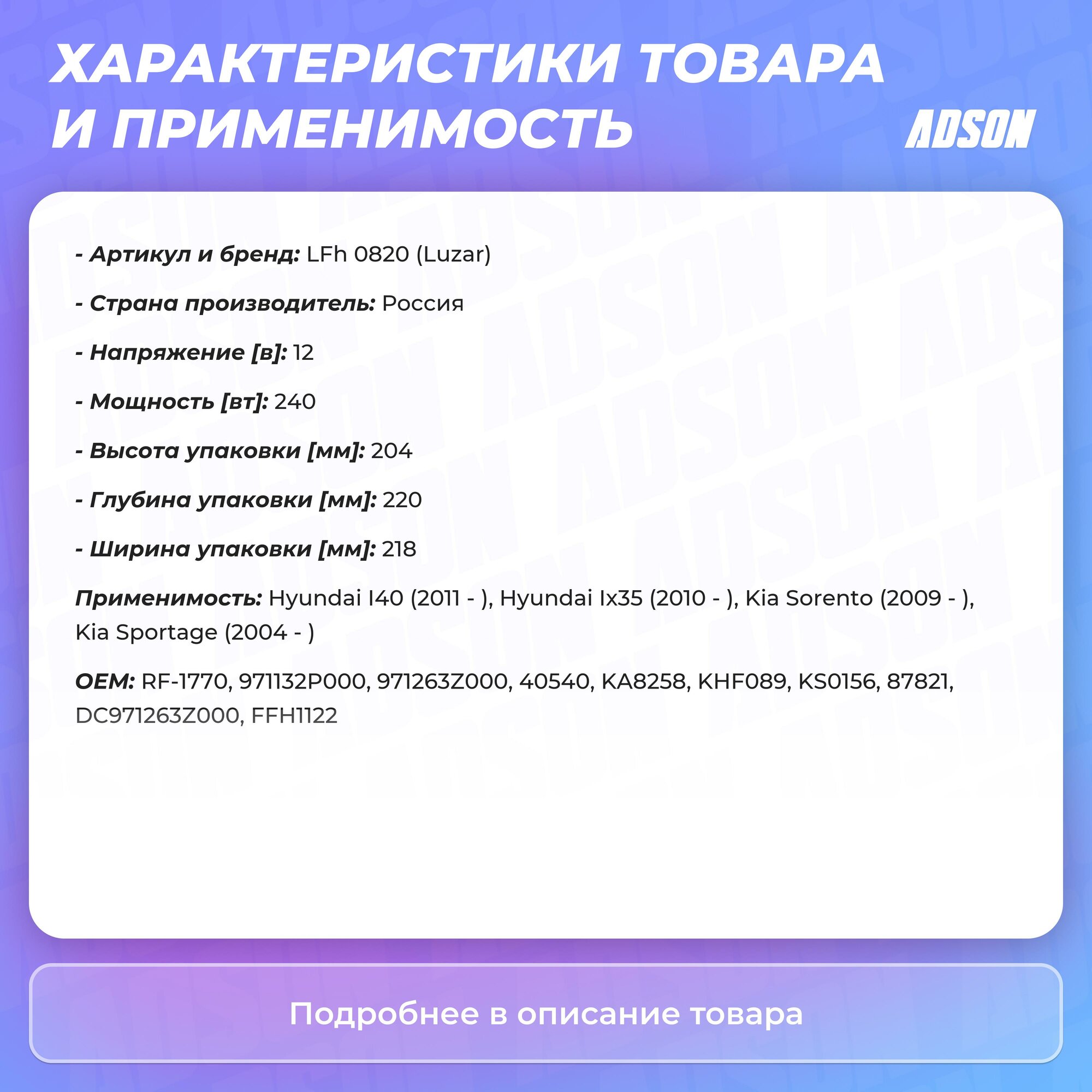 Сервис сравнения цен СкидкаГИД предлагает сравнить цены на товар «Электровентилятор отопителя для автомобилей Sportage III (10-)/ix35 (10-) (тип Doowon) LUZAR (LFh 0820)»