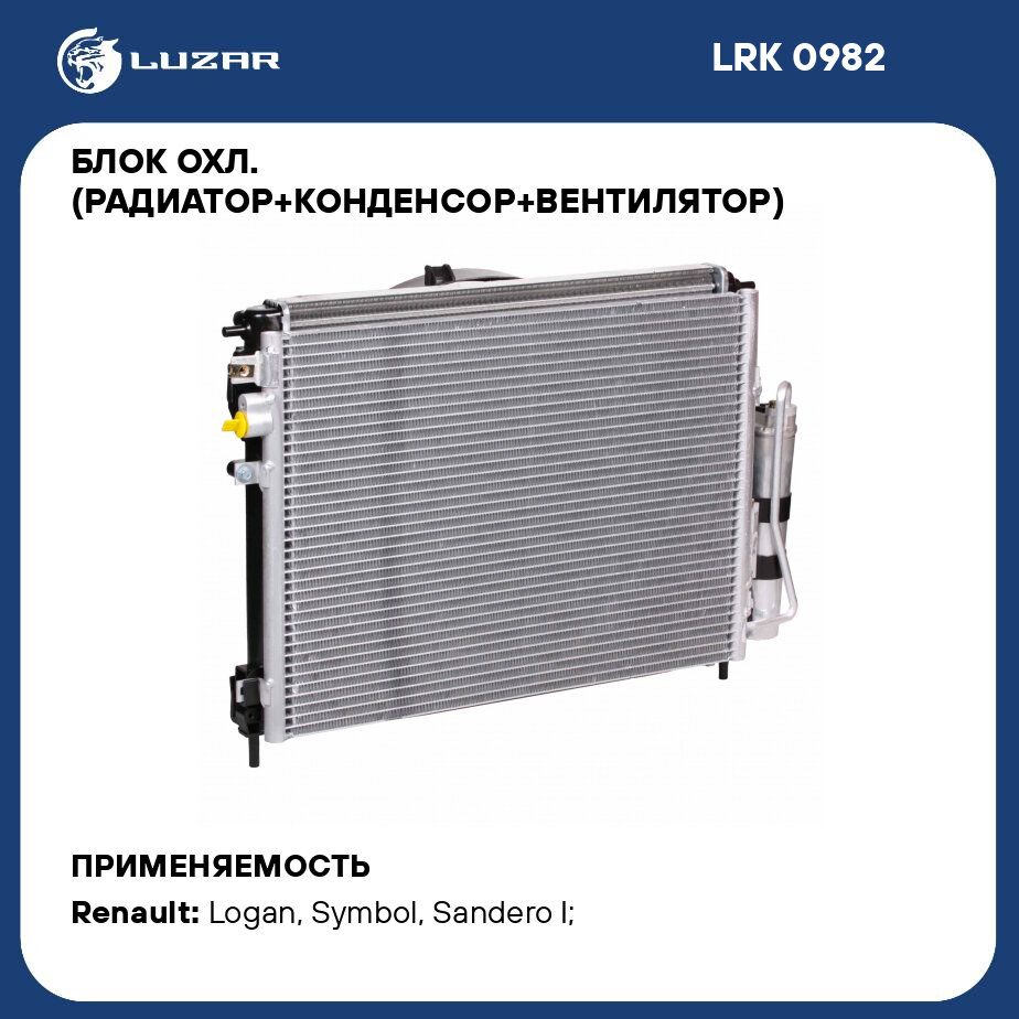 Блок охл. (радиатор+конденсор+вентилятор) для а/м Renault Logan (04-) AC+ LUZAR (LRK 0982)