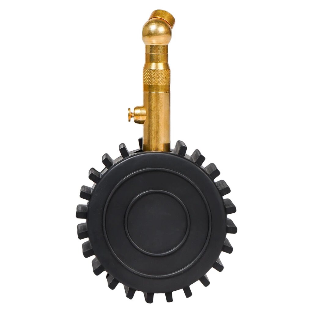Устройство для измерения давления в шинах автомобиля. Манометр имеет прочный металлический корпус, защищённый резиновым чехлом.