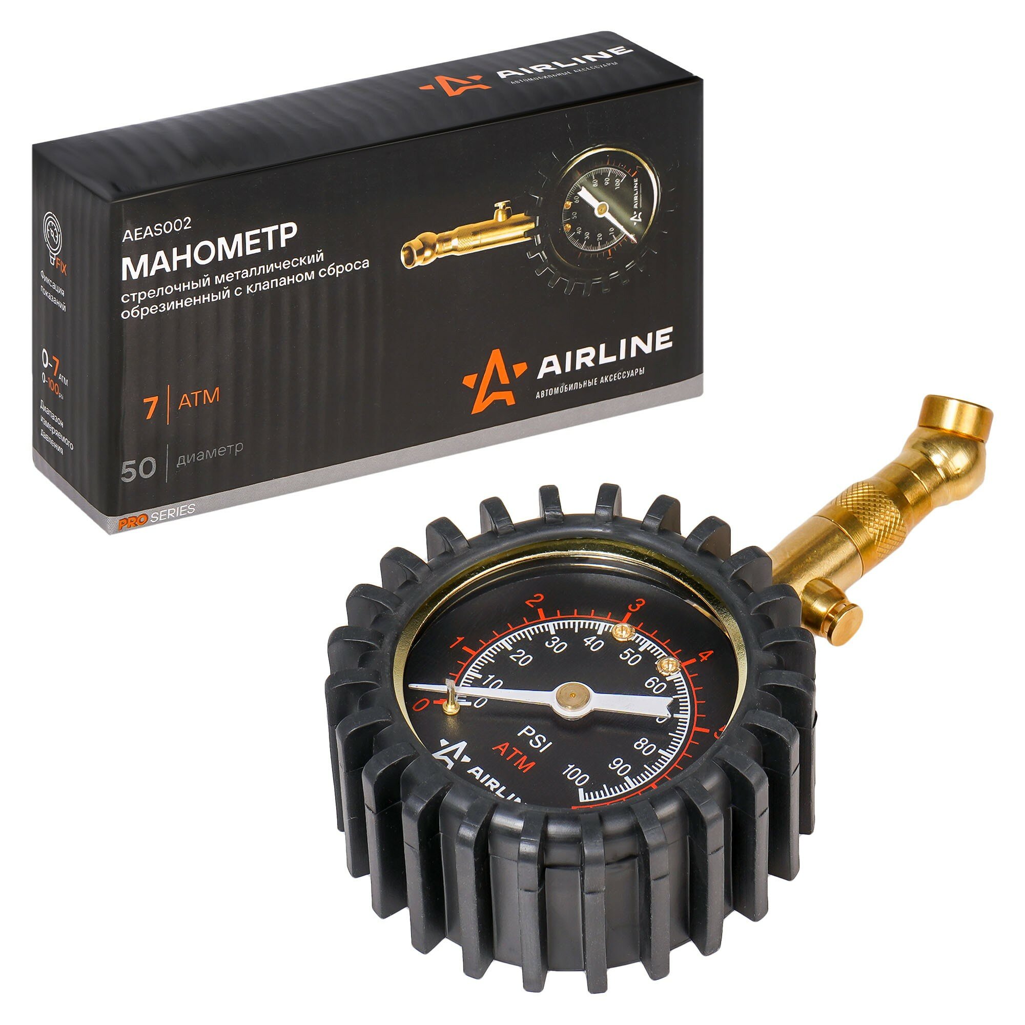 Манометр стрелочный металл. 7АТМ диам. 50мм обрезин. с клапаном сброса PRO AIRLINE AEAS002 PRO стрелочный 7АТМ 50 мм с клапаном сброса