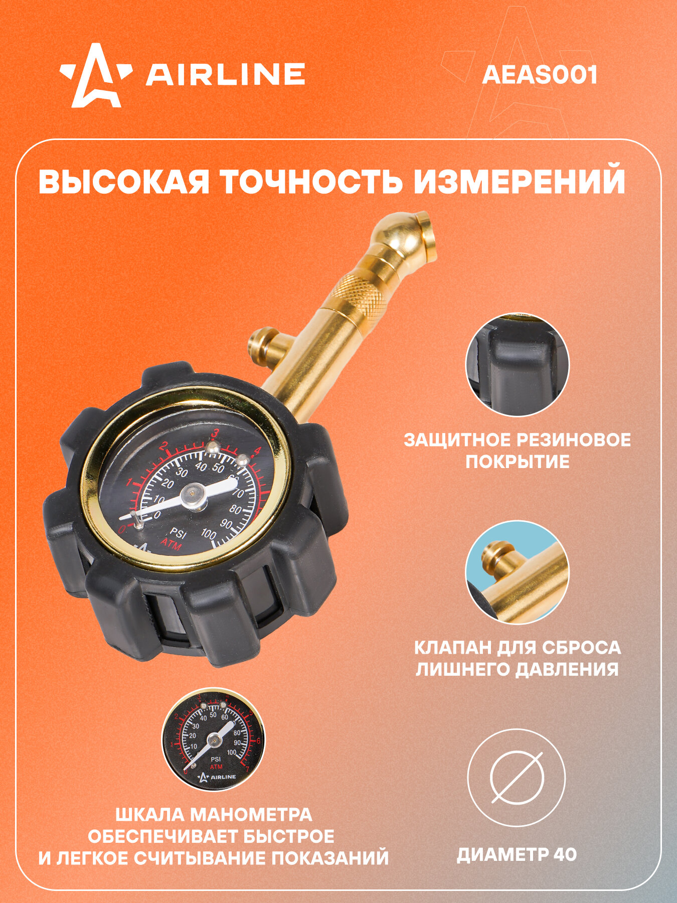 Манометр стрелочный металл. 7АТМ диам. 40мм обрезин. с клапаном сброса PRO AIRLINE AEAS001 PRO стрелочный 7АТМ 40 мм с клапаном сброса