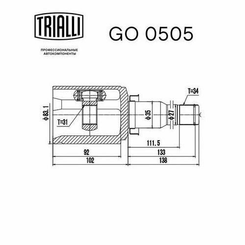 ШРУС внутренний левый для автомобилей Chevrolet Cruze (09-) 1.8i MT TRIALLI (GO 0505)