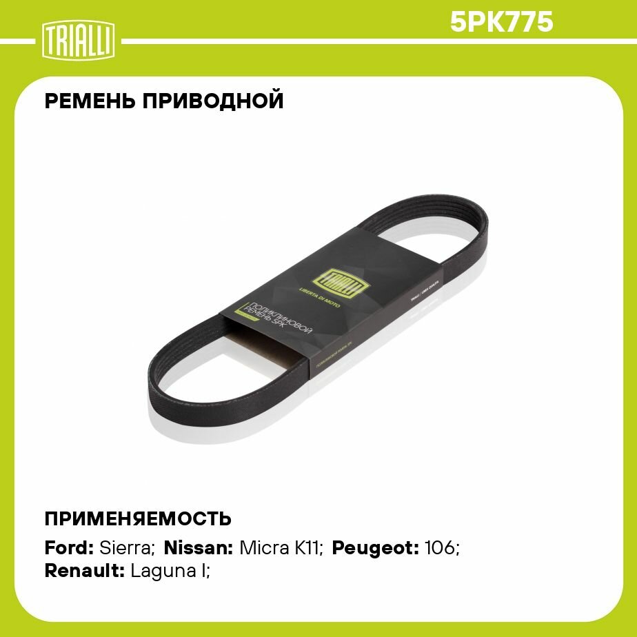 Ремень приводной для автомобилей Nissan Micra K11 (92-) 1.5d (5PK775) TRIALLI 5PK775