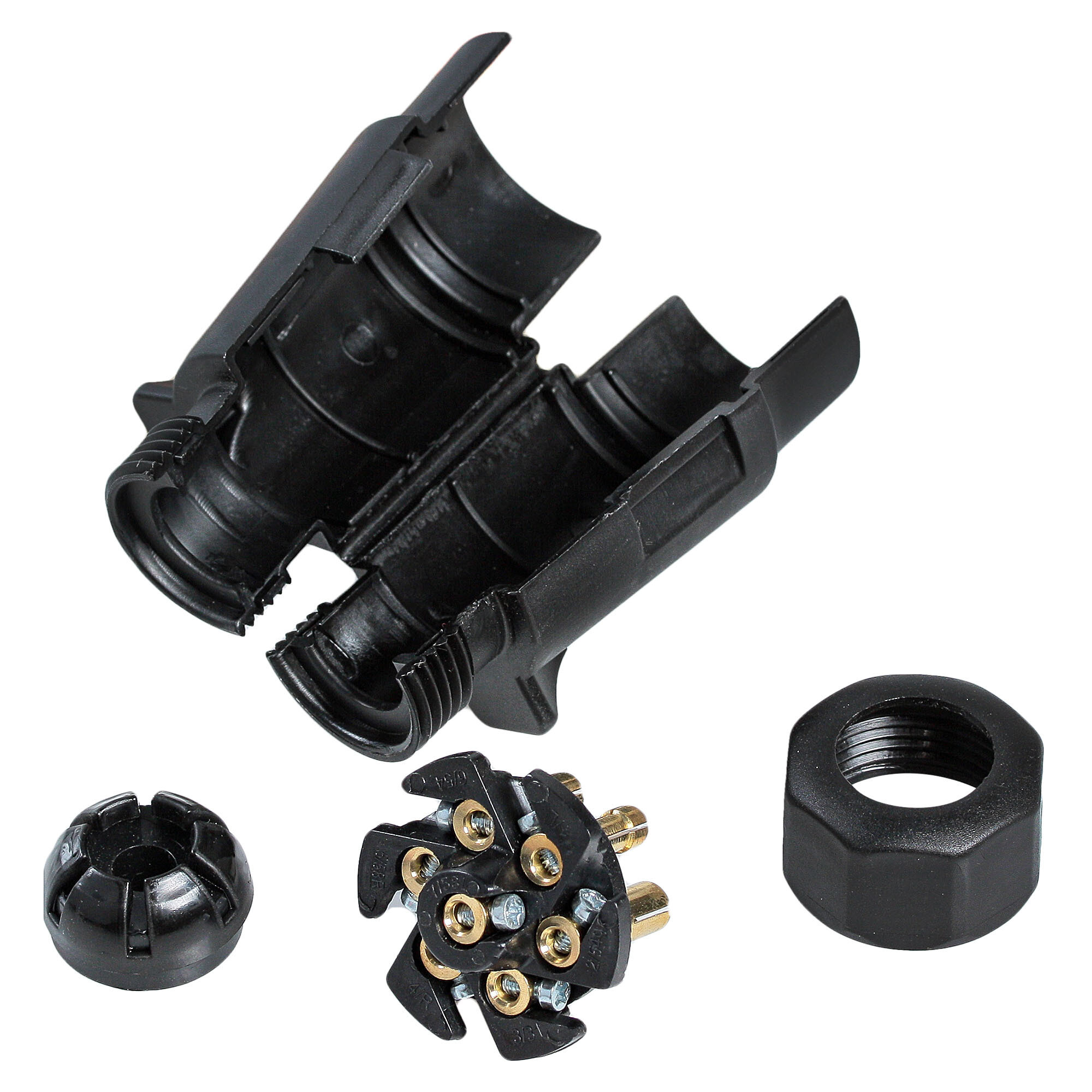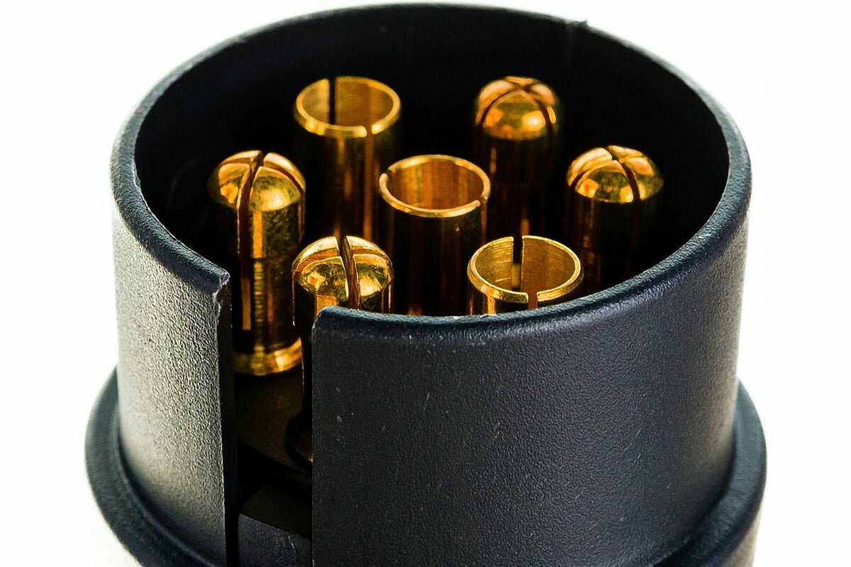 Корпус вилки выполнен из прочного пластика. Электрические разъёмы из латуни обеспечивают надёжный контакт. Резиновые уплотнители защищают от грязи и влаги.