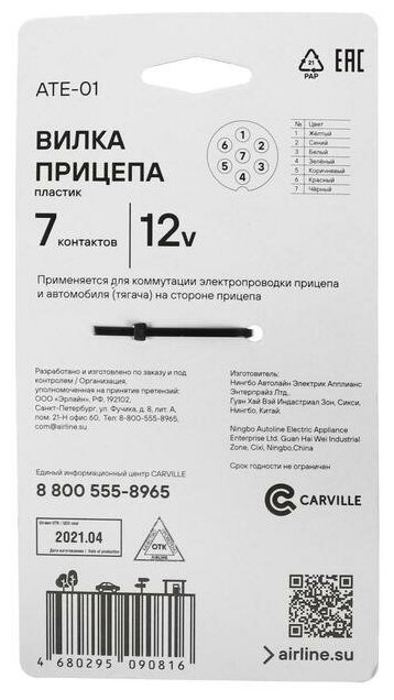 Модель: ATE01 12 В, 7 контактов пластик