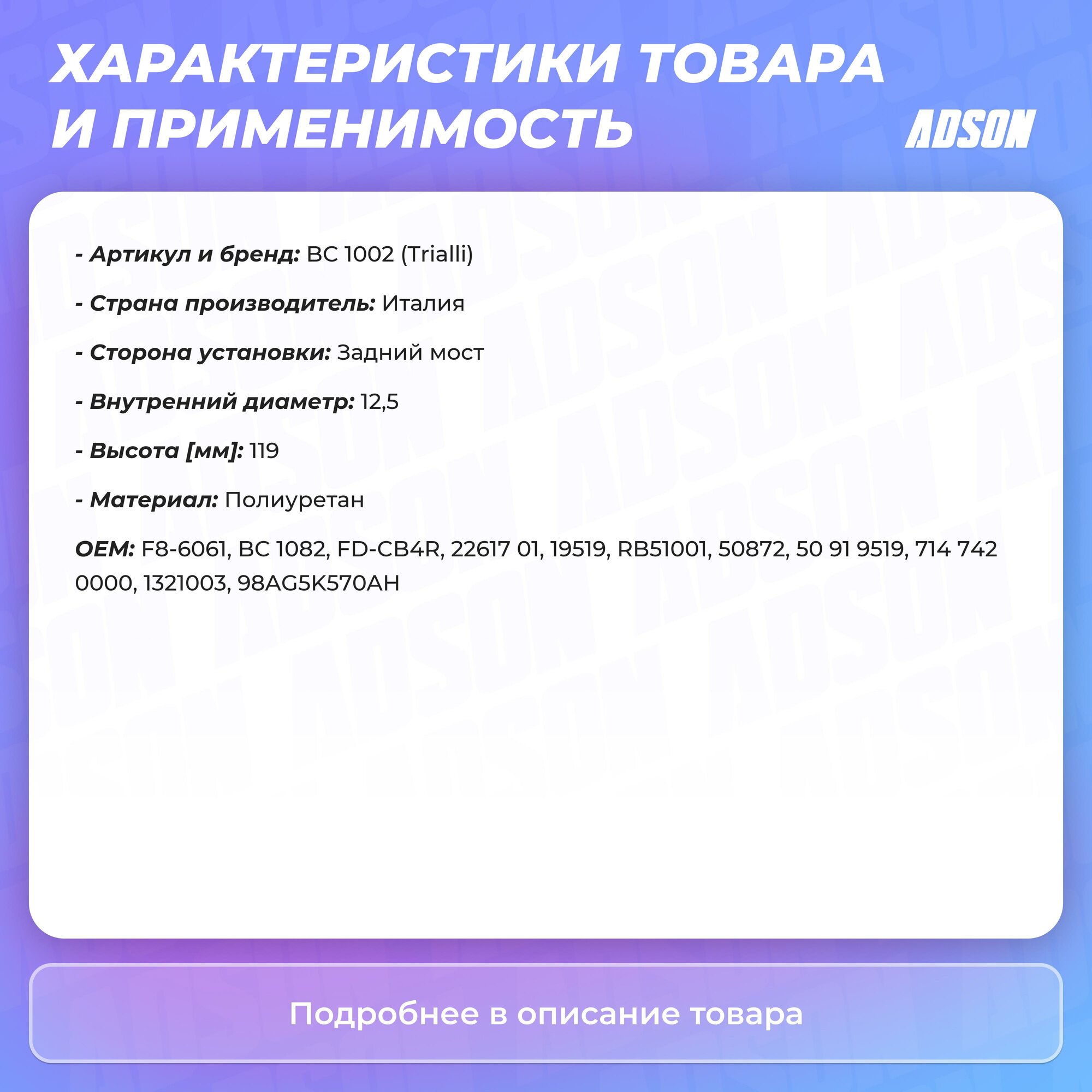 На сегодняшний день товар «Буфер (отбойник) хода сжатия заднего амортизатора для автомобиля Ford Focus II (05-)/Mazda 3 (03-) TRIALLI (BC 1002)» можно купить с кешбеком в 1 магазине: Яндекс.Маркет
