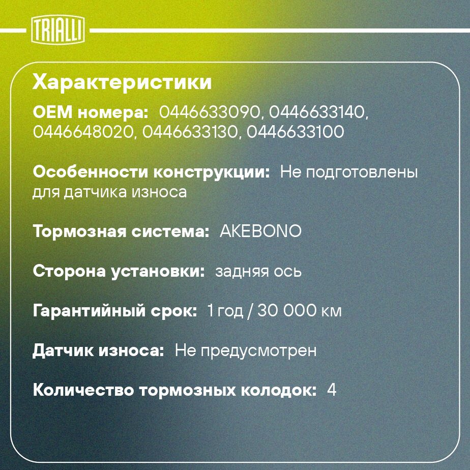 | Особенности конструкции | Не подготовлены для датчика износа |