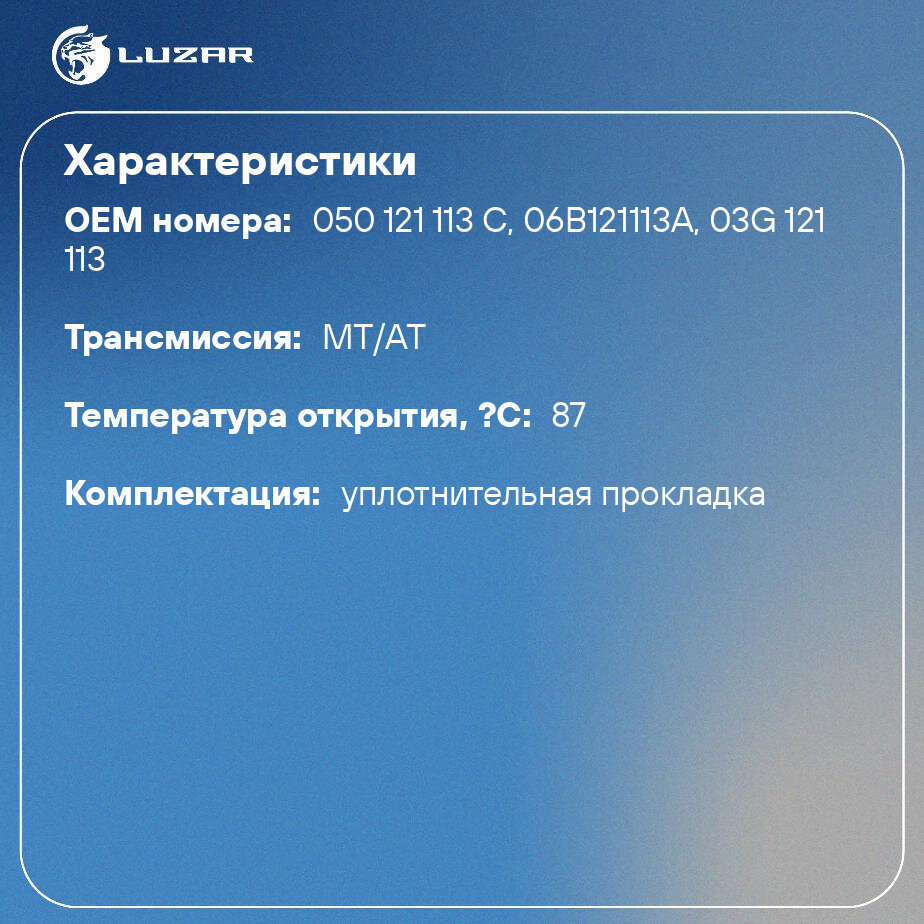 Термостат для автомобилей Octavia (96-)/Octavia (A5) (04-)/Golf IV (96-)/Golf V (03-) (термоэлемент) LUZAR (LT 1800)