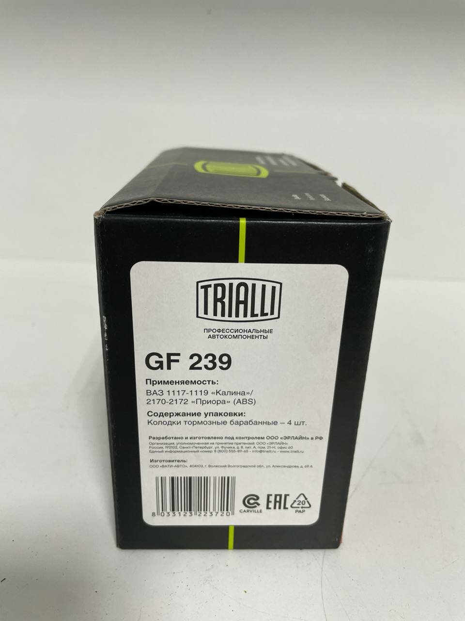 Колодки тормозные барабанные для автомобилей Лада 1118/2170 (ABS) TRIALLI (GF 239)