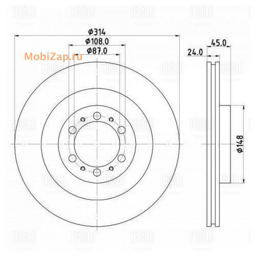 Диск тормозной передний для автомобилей Mitsubishi Pajero Sport (98-) / L200 (01-) 2.5TD d=314 TRIALLI (DF 117403)