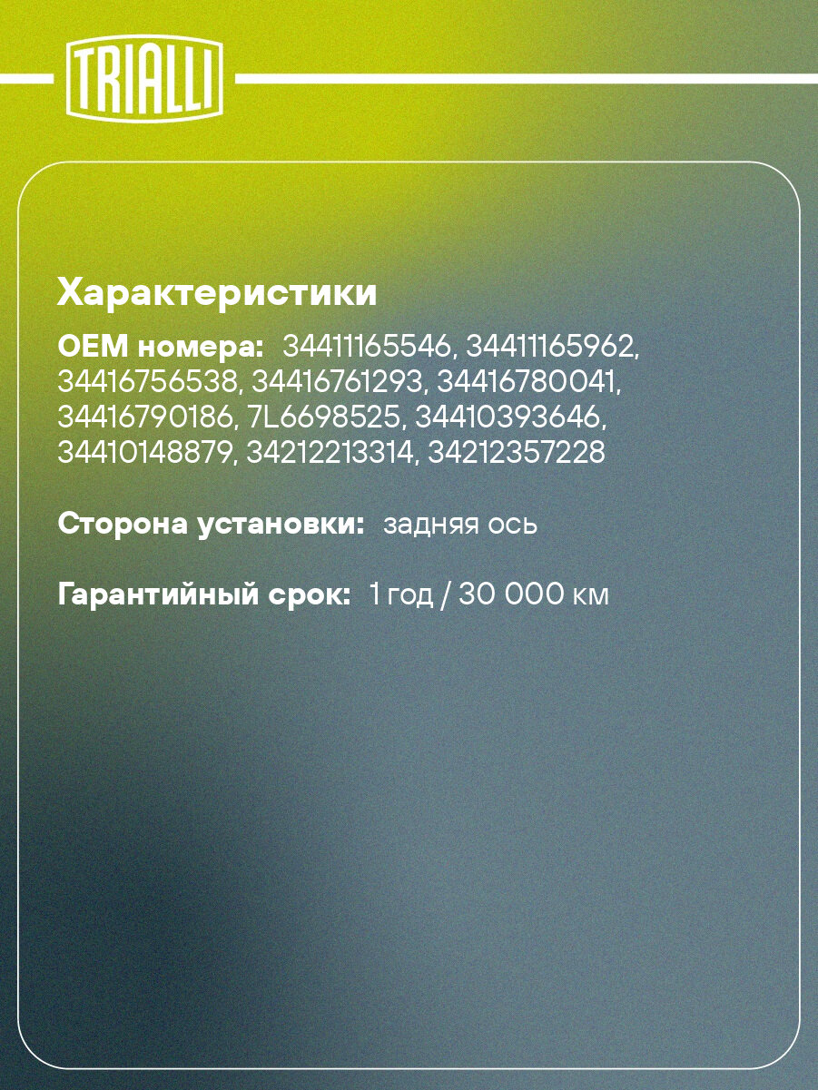 Бренд TRIALLI предлагает тормозные компоненты, соответствующие требованиям технических регламентов. Продукция проходит проверку на соответствие стандартам качества, включая испытания на износ, термостойкость и эффективность торможения.