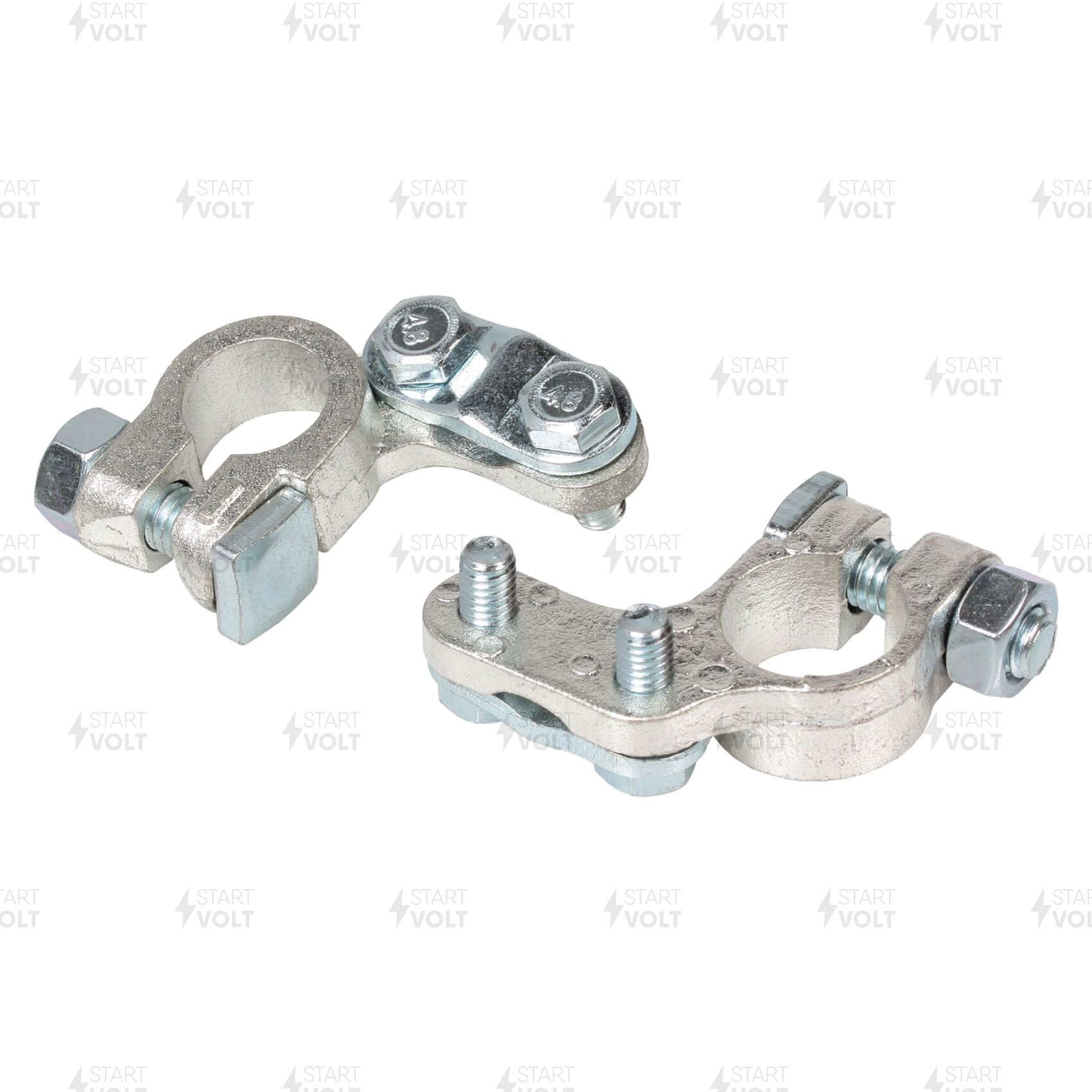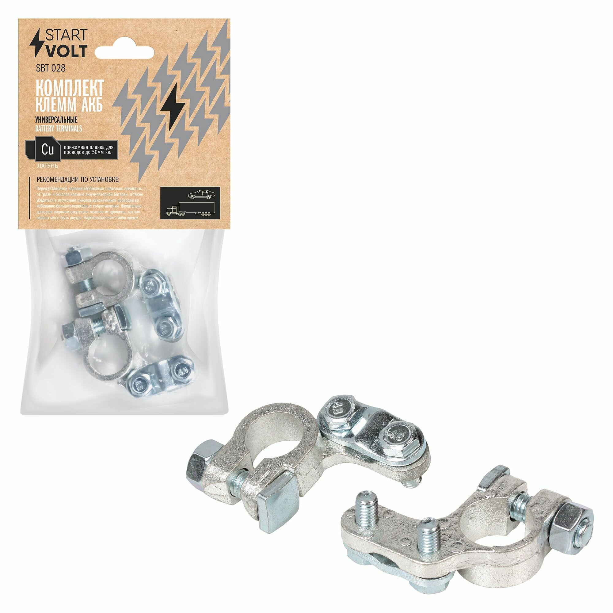 Клеммы АКБ в комплекте латунь прижимная планка для проводов до 50 мм кв. StartVolt (SBT 028)