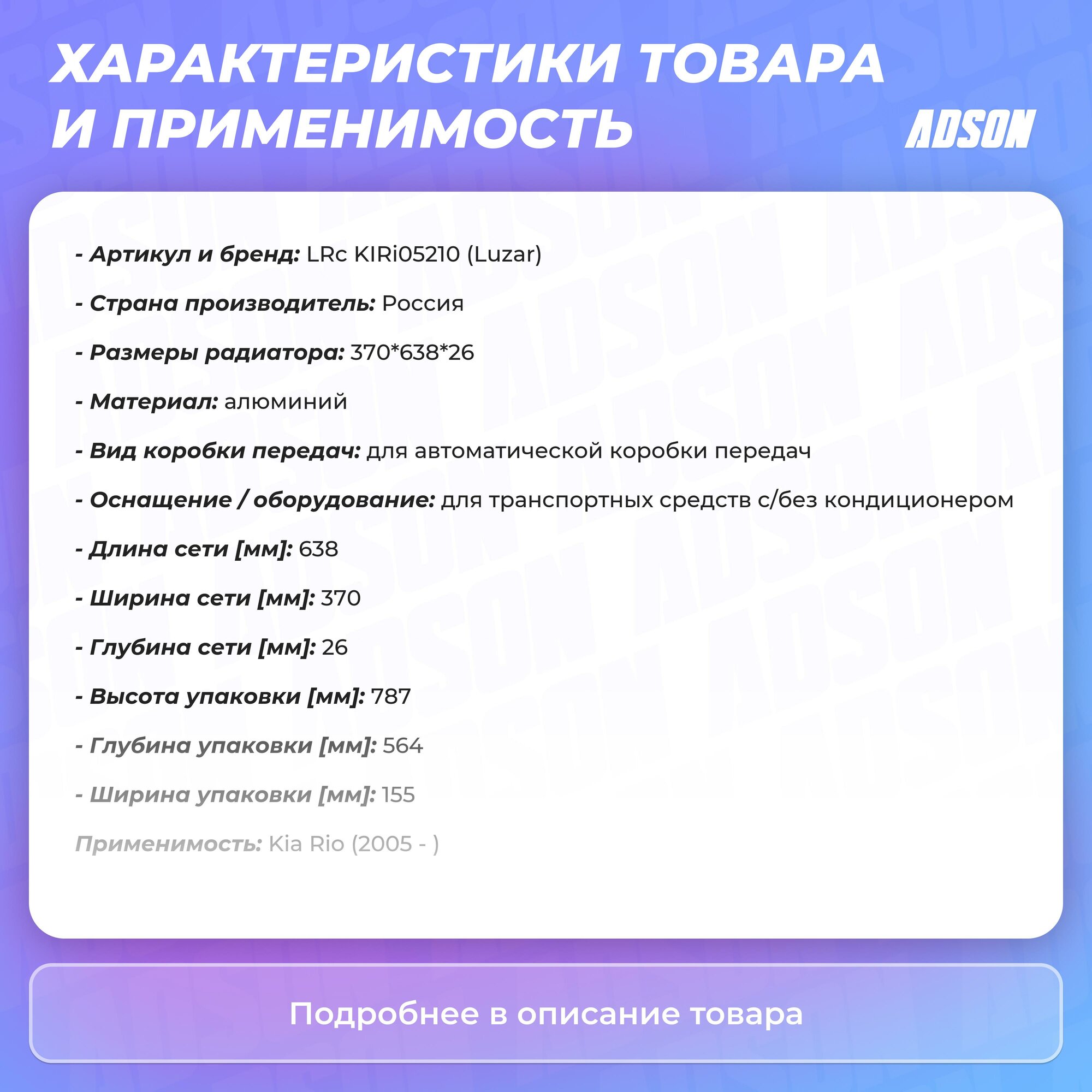 Сервис сравнения цен СкидкаГИД предлагает сравнить цены на товар «Радиатор охлаждения для автомобилей Rio (05-) AT LUZAR (LRc KIRi05210)»