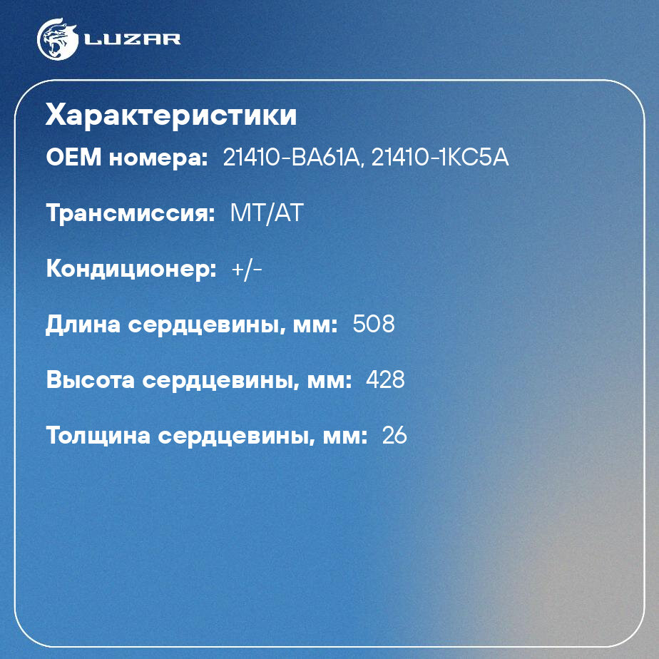 | Сопутствующий товар | Радиаторы кондиционера (конденсеры):LRAC 1461 |