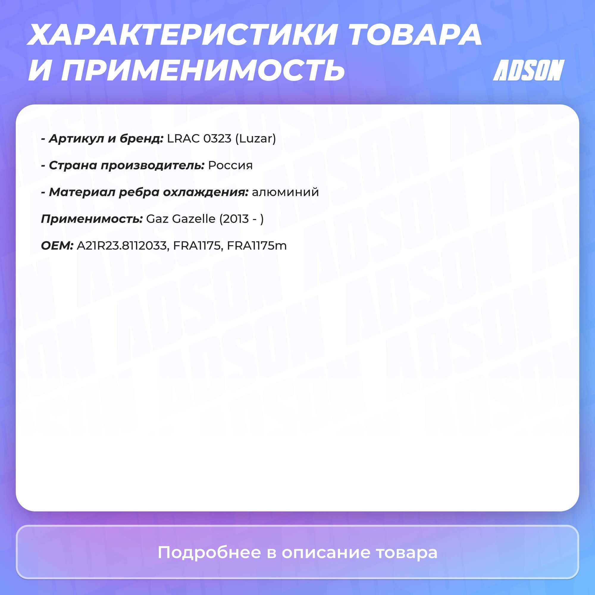 Сервис сравнения цен СкидкаГИД предлагает сравнить цены на товар «Радиатор кондиционера для автомобилей ГАЗель Next LUZAR (LRAC 0323)»