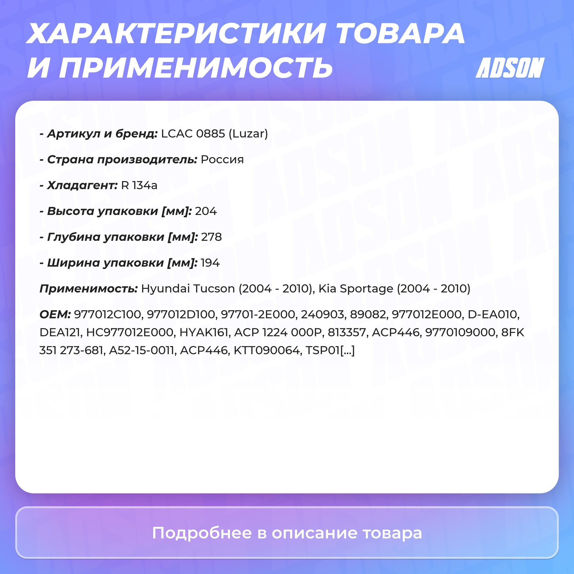 Компрессор кондиционера для автомобилей Tucson (04-)/Sportage II (04-) (тип Halla) LUZAR (LCAC 0885)