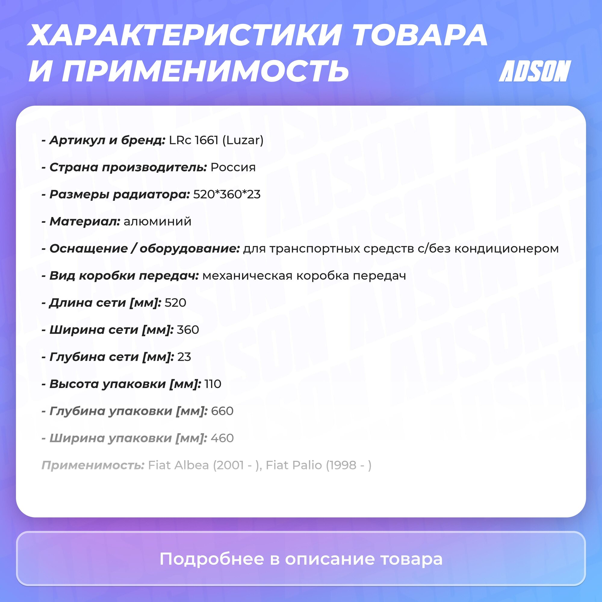 Радиатор охлаждения для автомобилей Albea (02-) A/C+ LUZAR (LRc 1661)