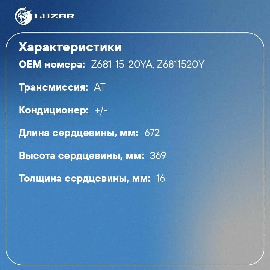Радиатор охлаждения для автомобилей Mazda 3 (BL) (09-) AT LUZAR (LRc 251Z6)
