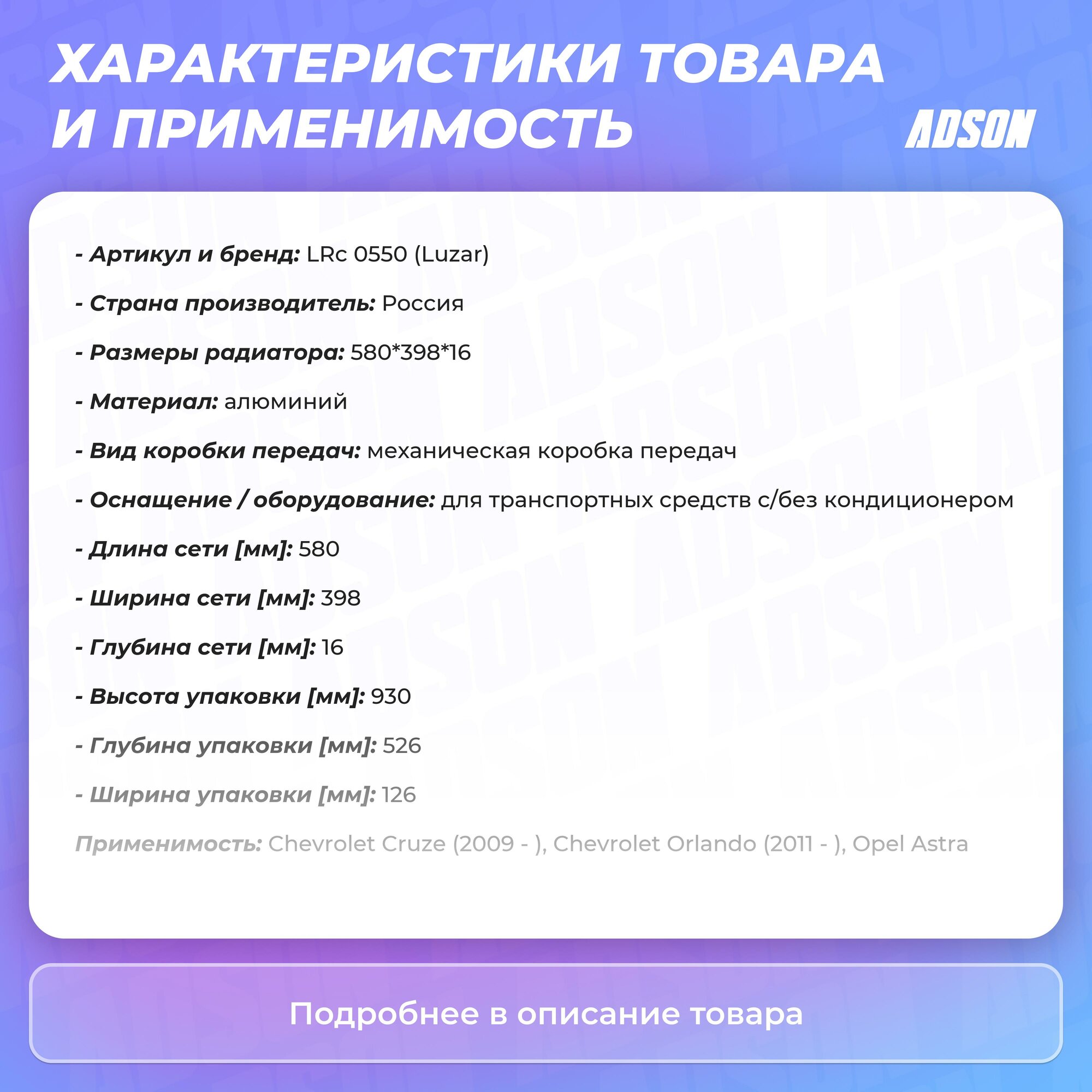 Сервис сравнения цен СкидкаГИД предлагает сравнить цены на товар «Радиатор охлаждения для автомобилей Cruze (09-) 1.8i MT LUZAR (LRc 0550)»