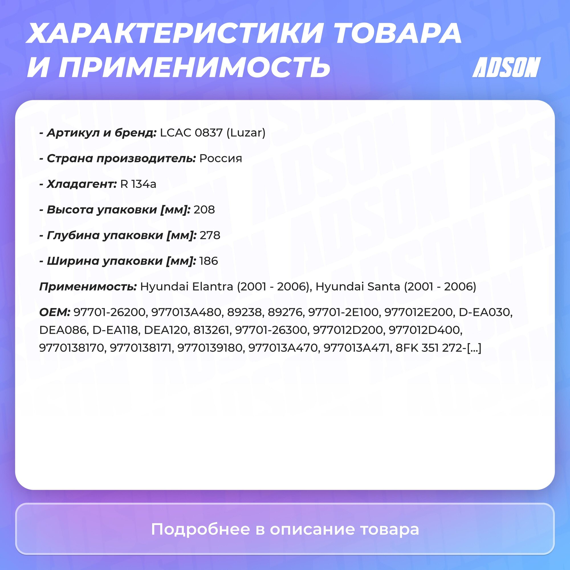 Сопутствующий товар: Радиаторы кондиционера (конденсеры): LRAC 0826; LRAC 0863; LRAC 08D2