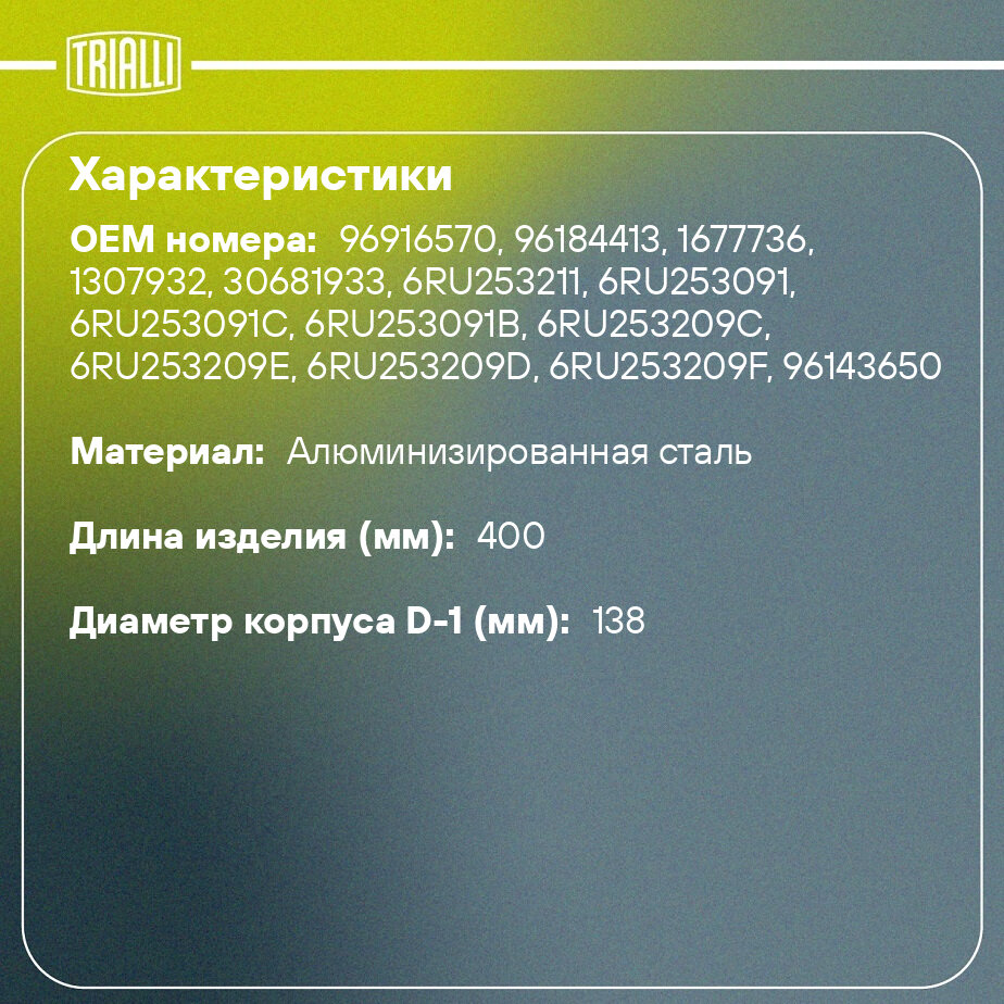 Глушитель универсальный (круглый) D=138 L=400 d=42 (нержавеющая алюминизированная сталь) TRIALLI (EMM 3103)