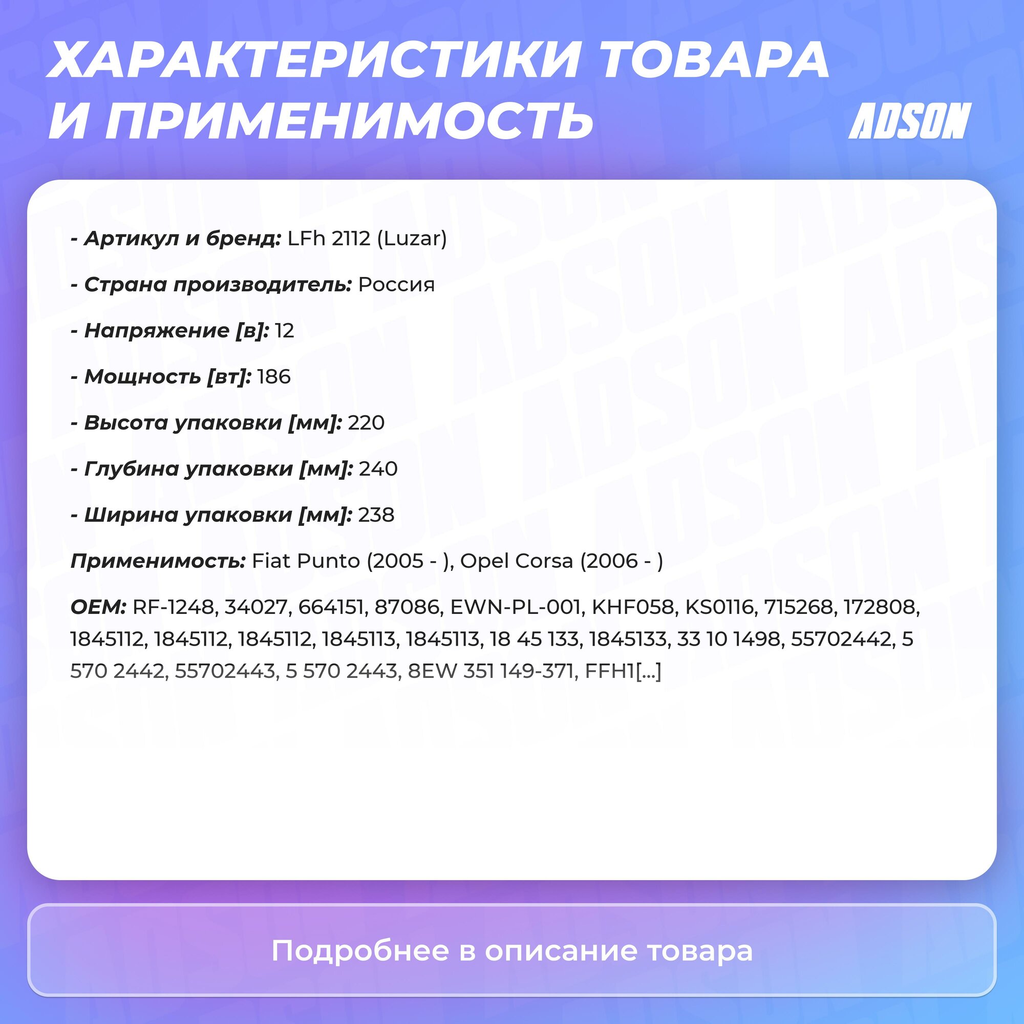 Сервис сравнения цен СкидкаГИД предлагает сравнить цены на товар «Электровентилятор отопителя для автомобилей Corsa D (06-) LUZAR (LFh 2112)»