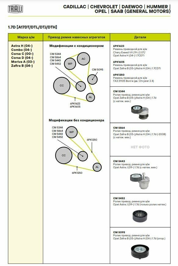 Сервис сравнения цен СкидкаГИД предлагает сравнить цены на товар «Ролик приводного ремня для автомобилей Opel Astra (00-) 1.7d TRIALLI (CM 5095)»