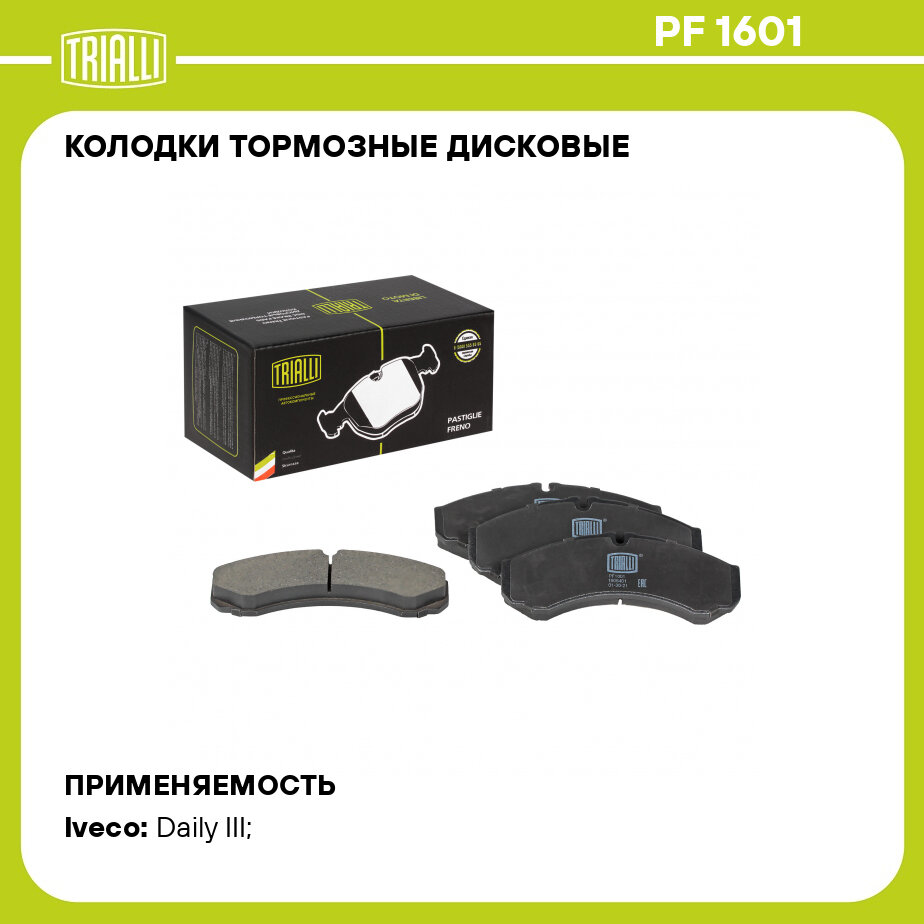 Колодки тормозные для автомобилей Iveco Daily (99-) дисковые передние TRIALLI (PF 1601)