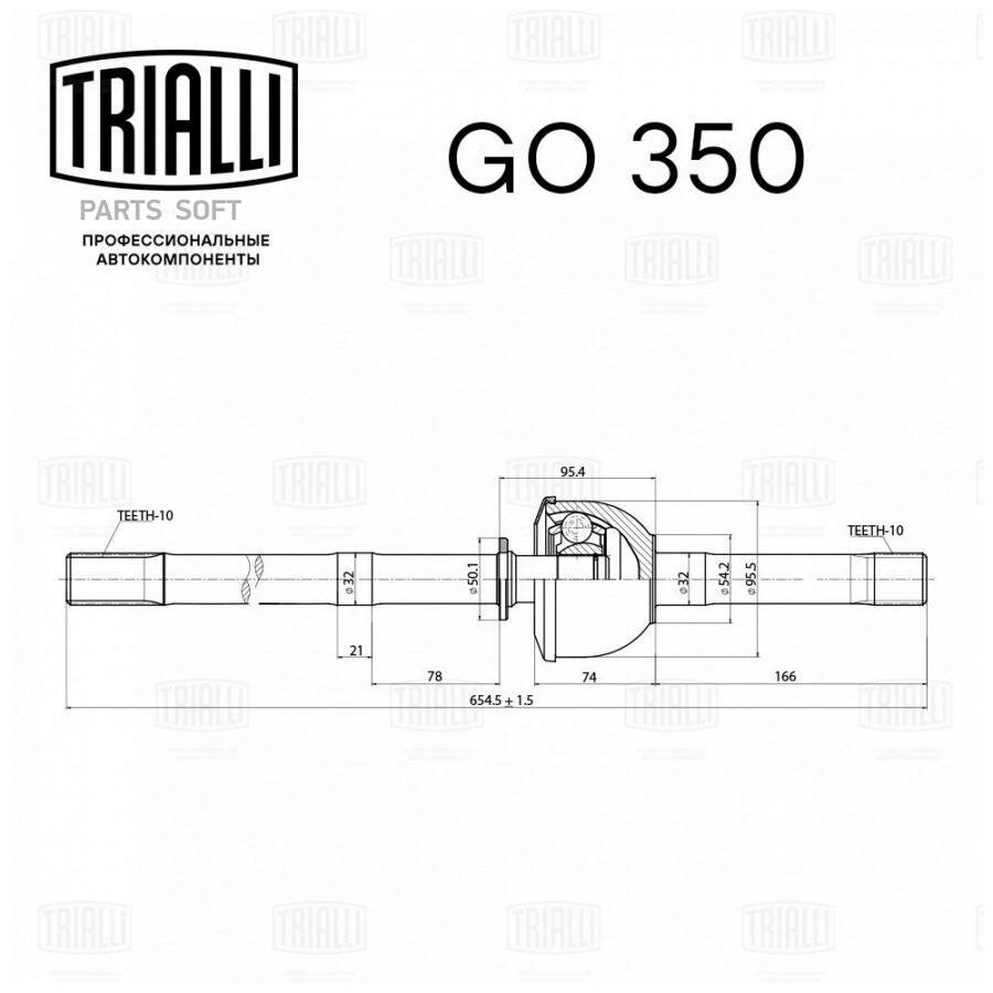 ШРУС правый для автомобилей УАЗ 3741 н/о (1445 мм. гибридный мост) TRIALLI (GO 350)