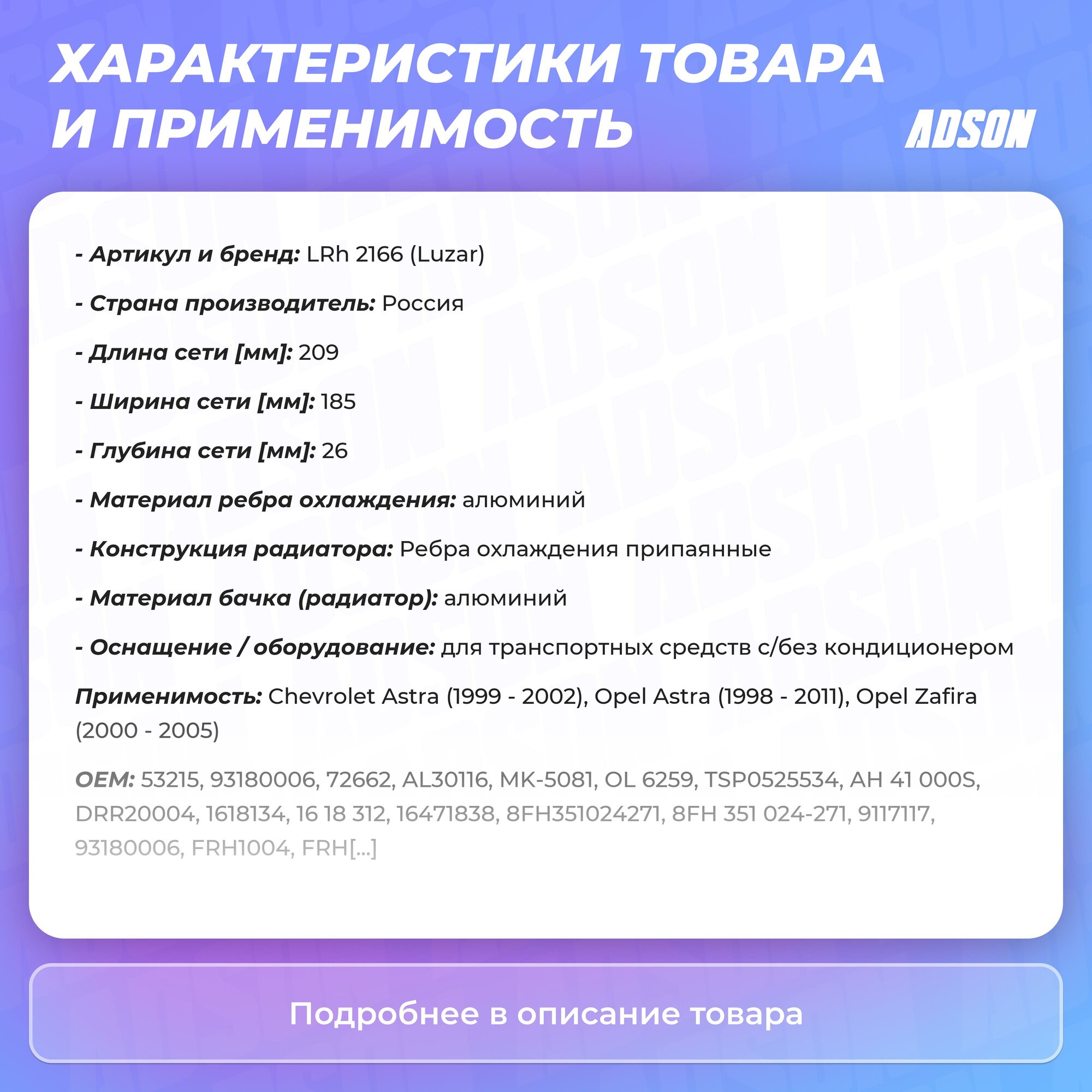 Сервис сравнения цен СкидкаГИД предлагает сравнить цены на товар «Радиатор отопителя для автомобилей Astra H (04-) LUZAR (LRh 2166)»