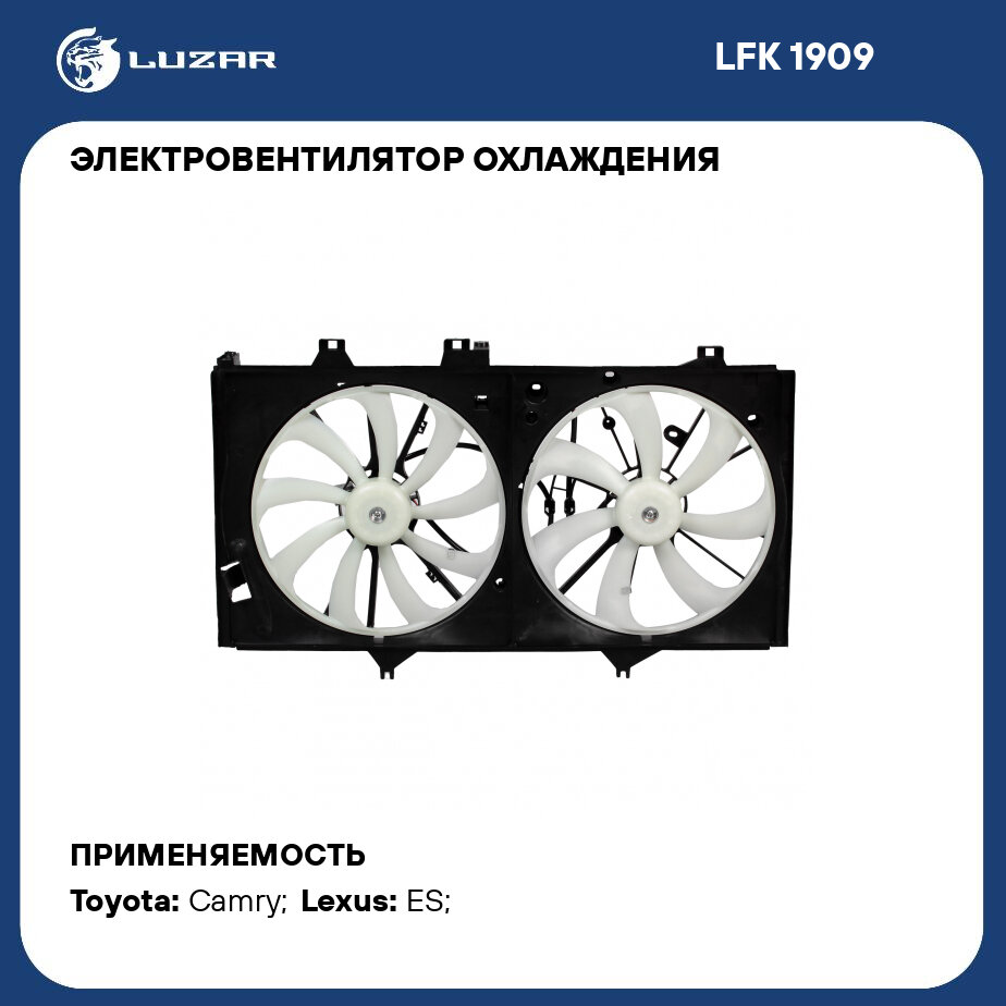 Электровентилятор охлаждения для автомобилей Camry (XV50) (11-) 3.5i (2 вент.) (с кожухом) LUZAR (LFK 1909)