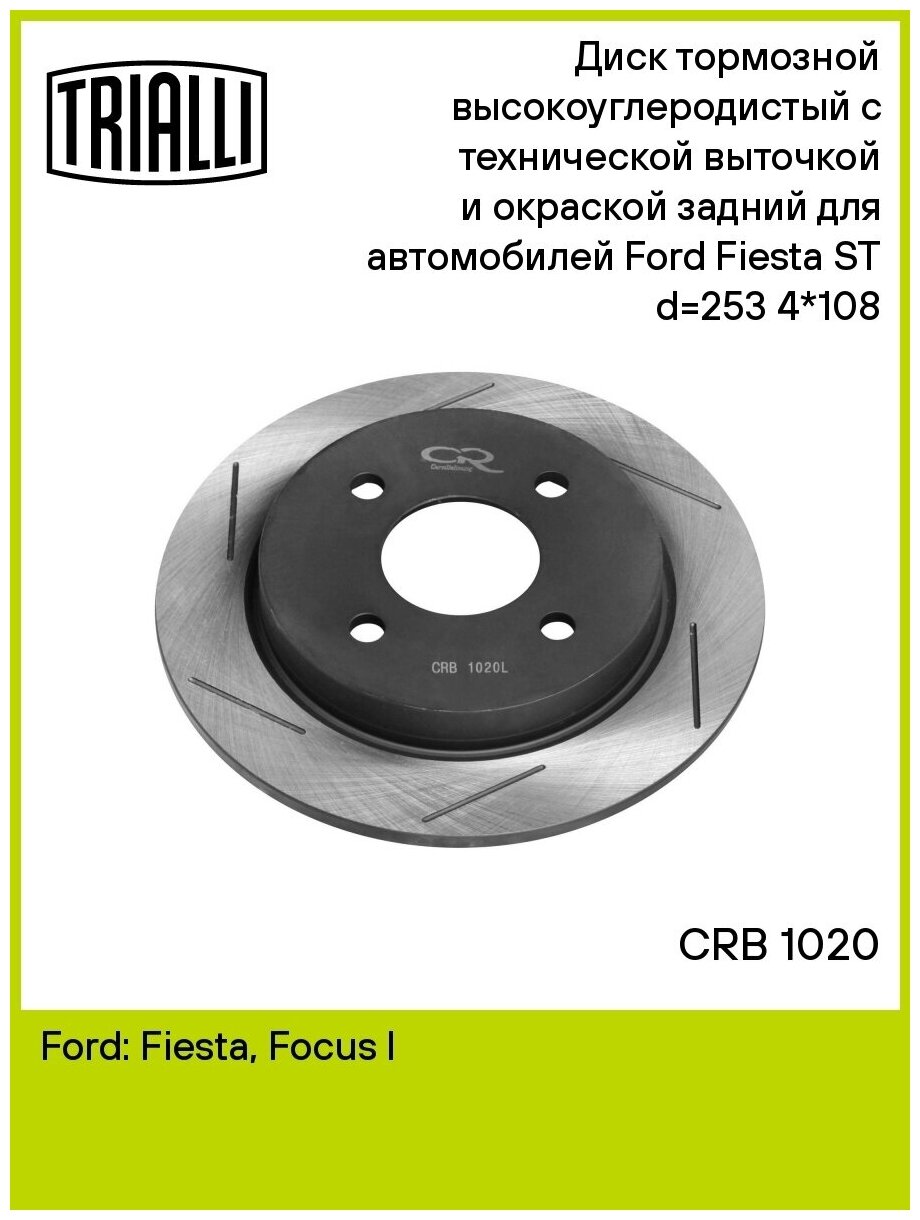 Диск тормозной высокоуглеродистый с технической выточкой и окраской задний для автомобилей Ford Fiesta ST (01-) d=253 4*108 TRIALLI (CRB 1020)