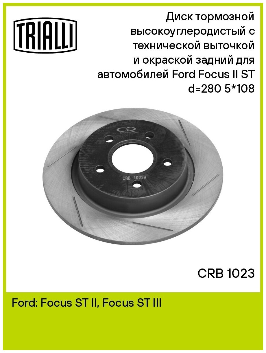 Диск тормозной высокоуглеродистый с технической выточкой и окраской задний для автомобилей Ford Focus II ST (05-) d=280 5*108 TRIALLI (CRB 1023)