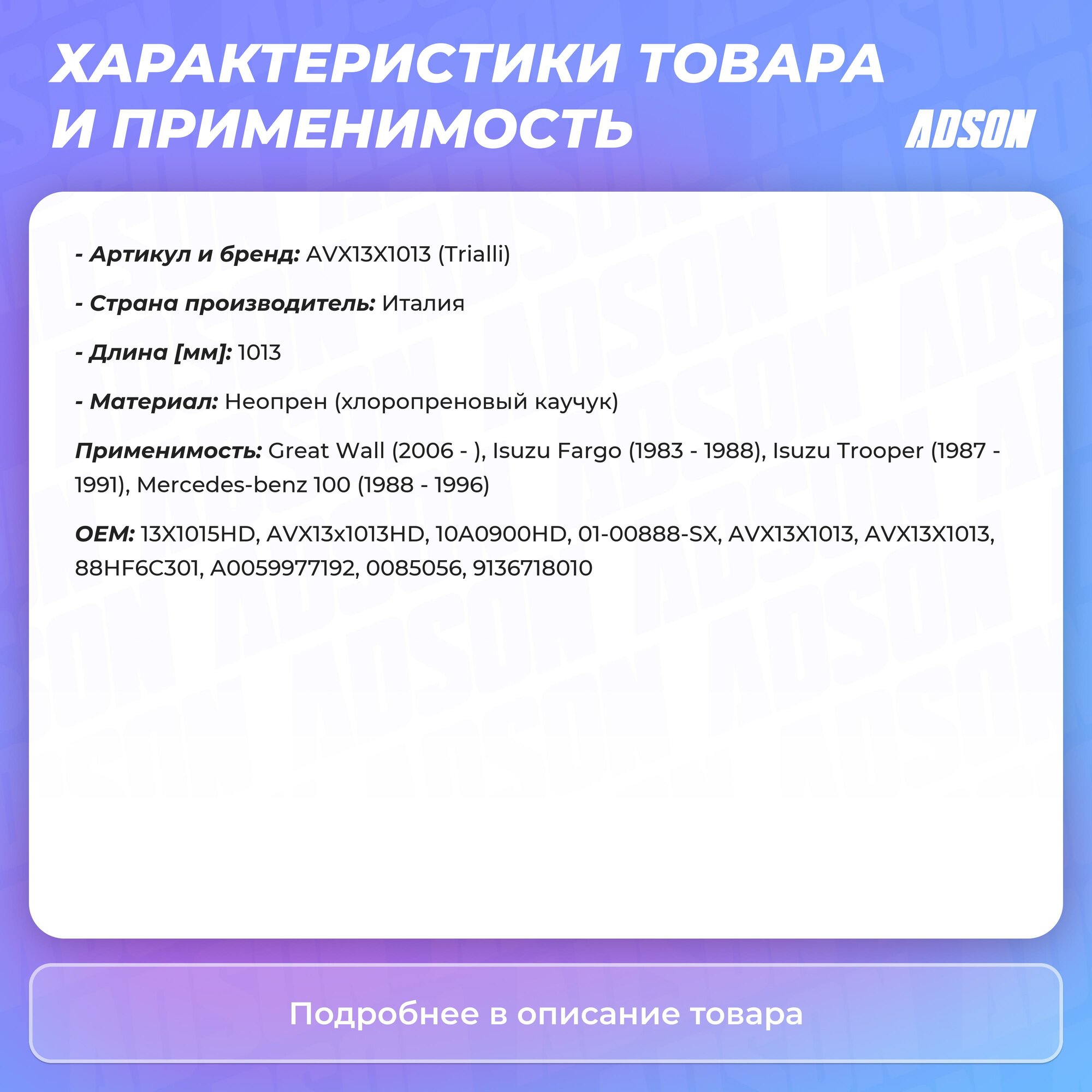 - Тип товара: Ремни клиновые AVX
