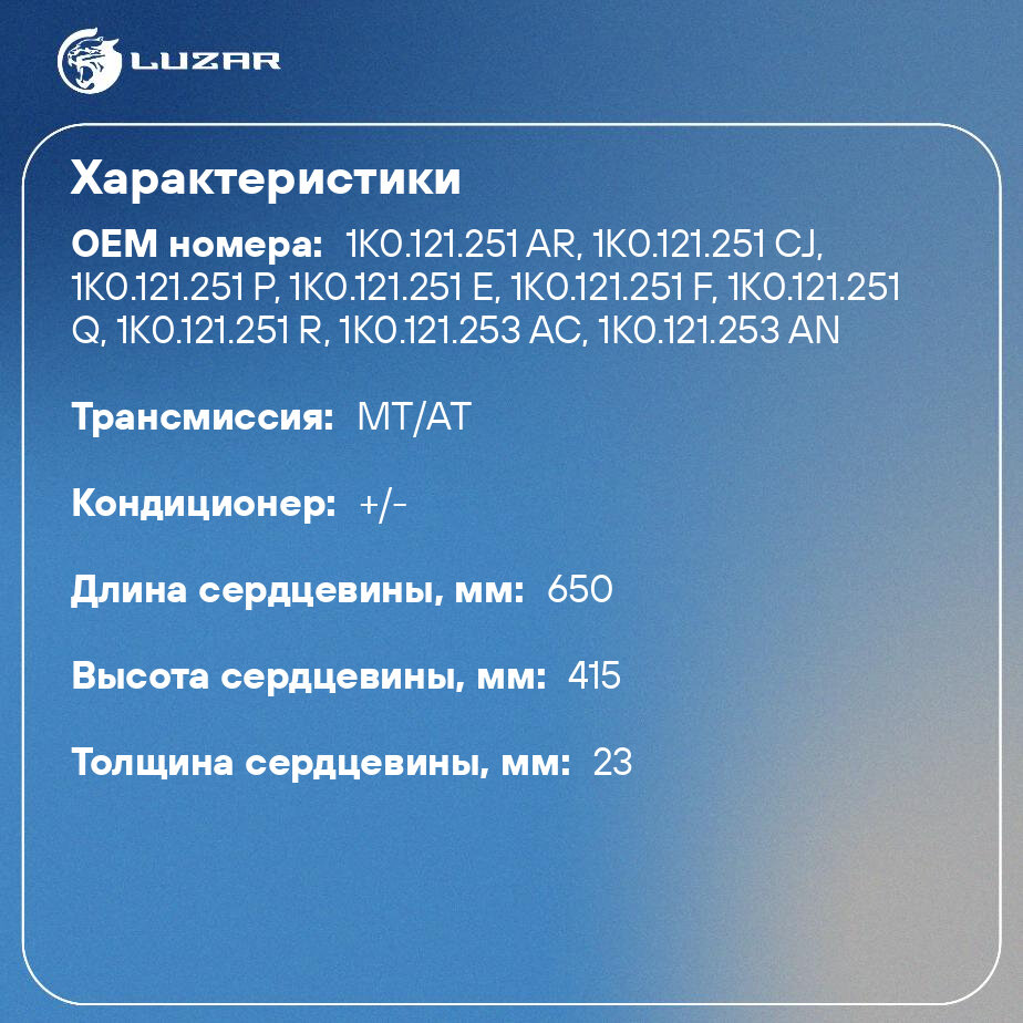 Радиатор охлаждения для автомобилей Octavia A5 (04-)/Golf V (03-) LUZAR (LRc 18K0)